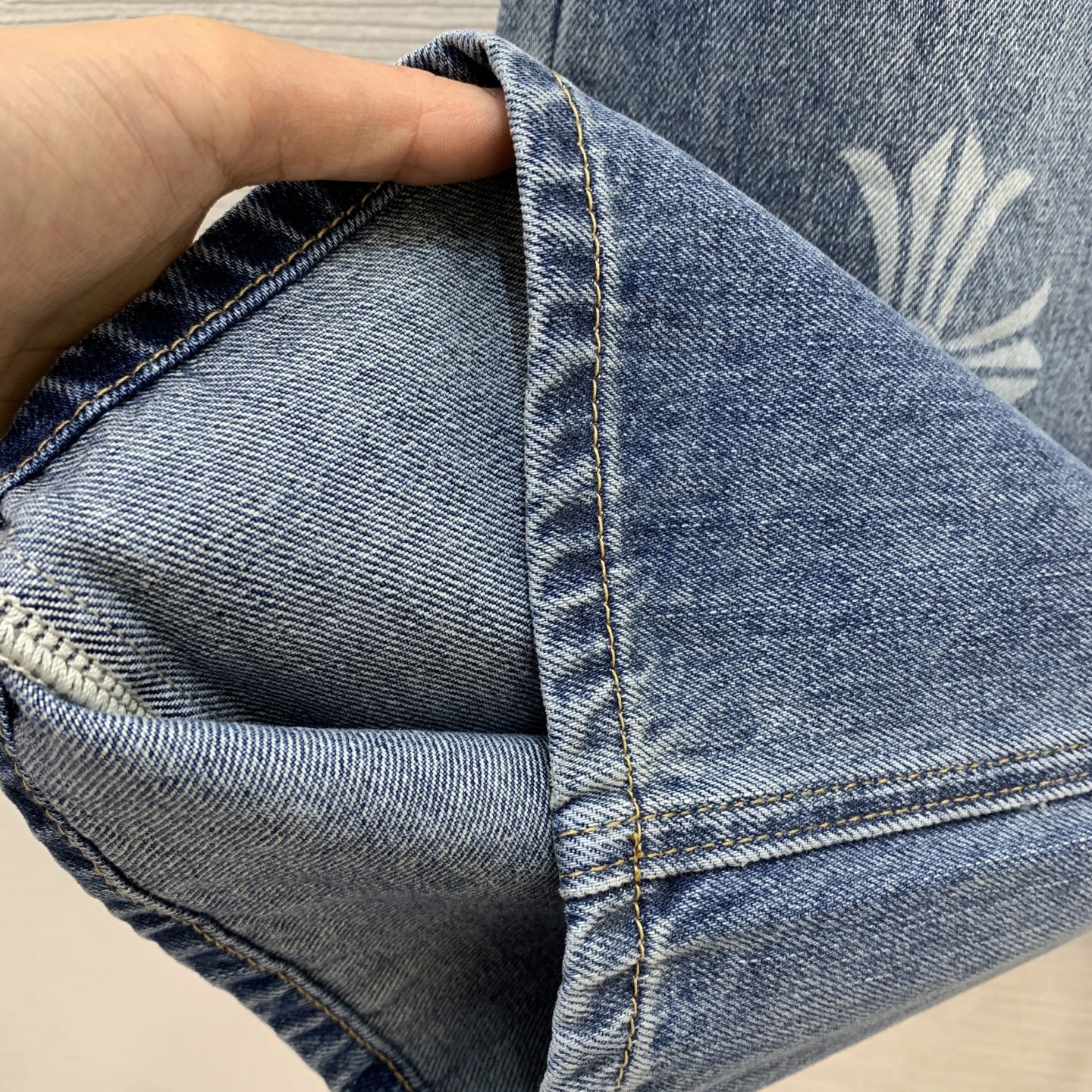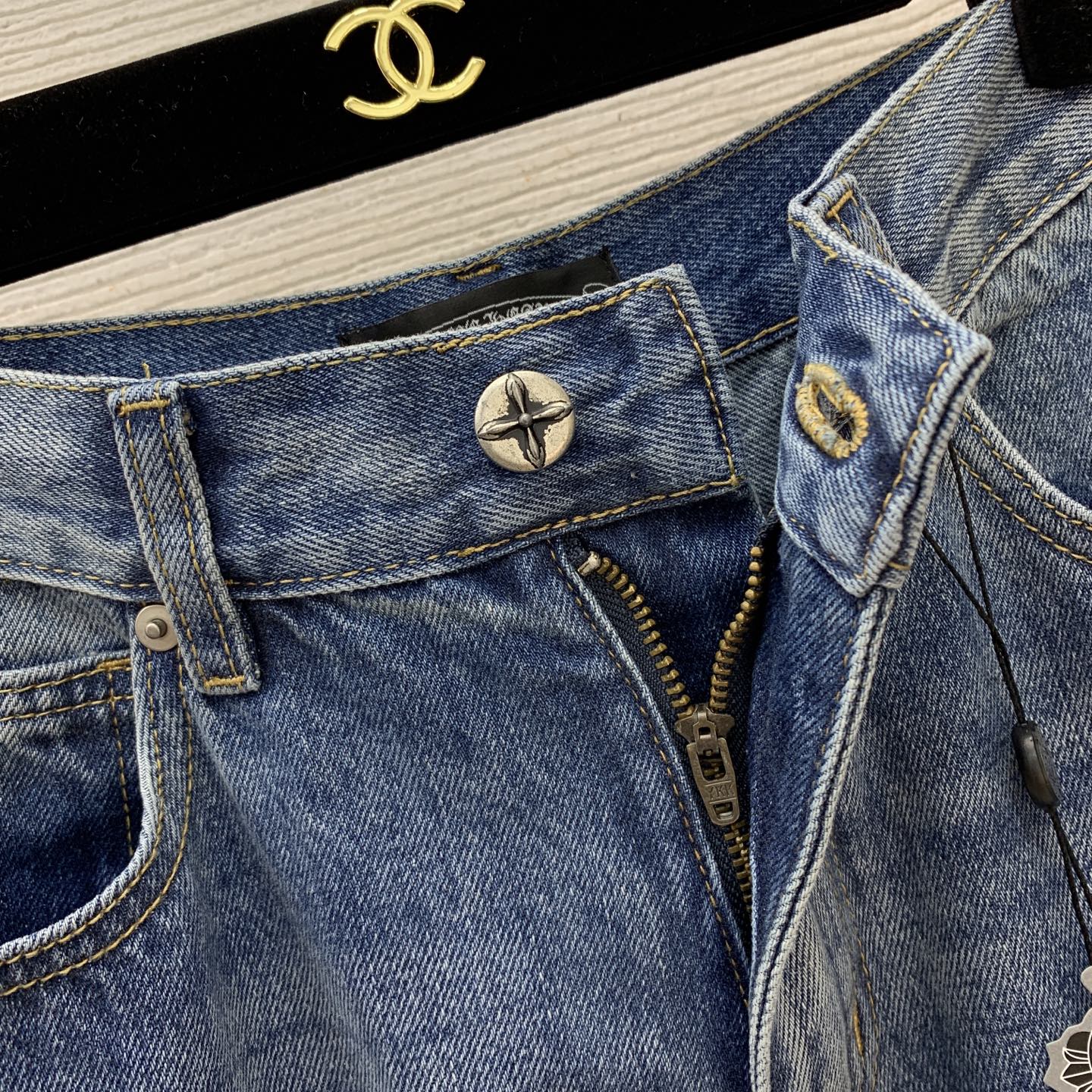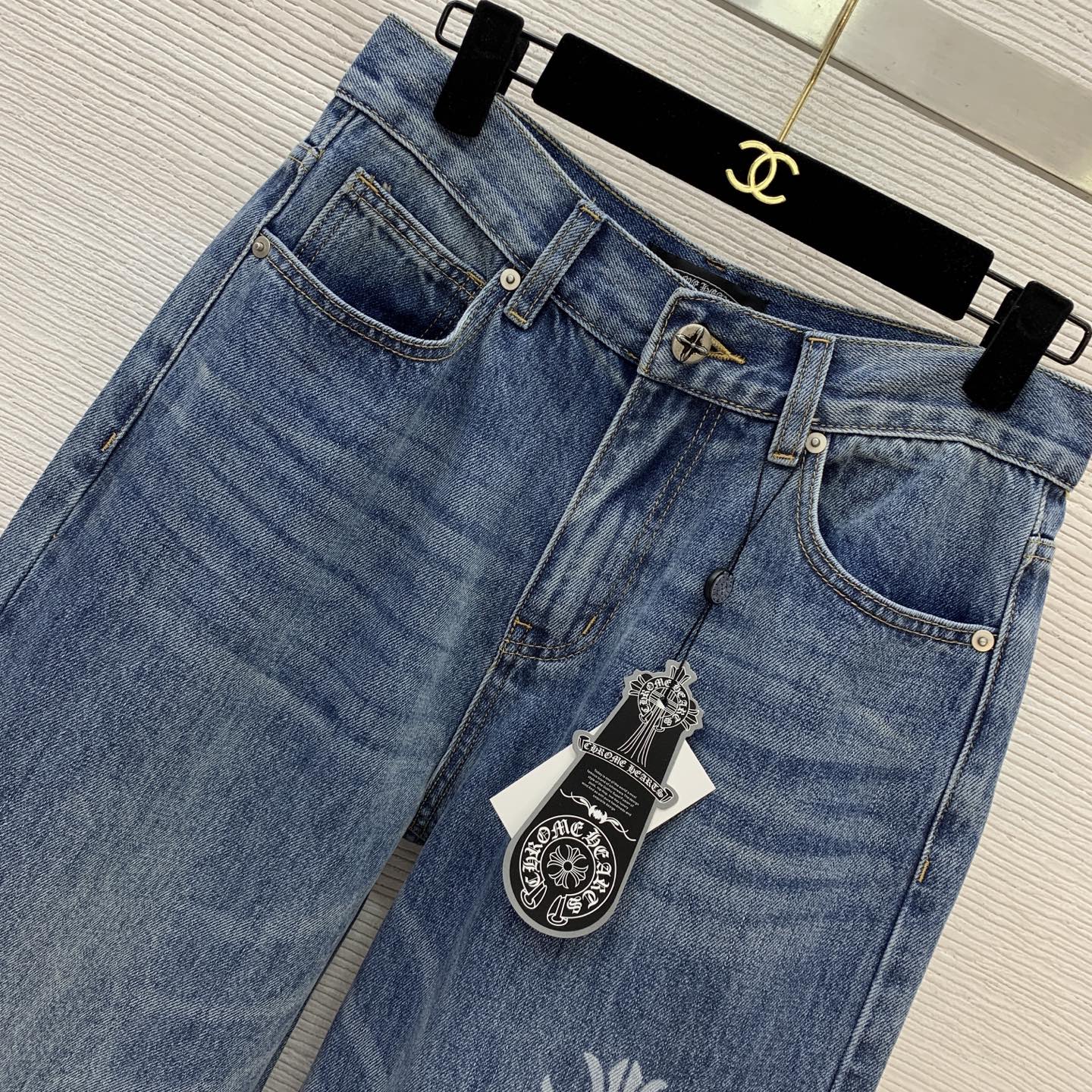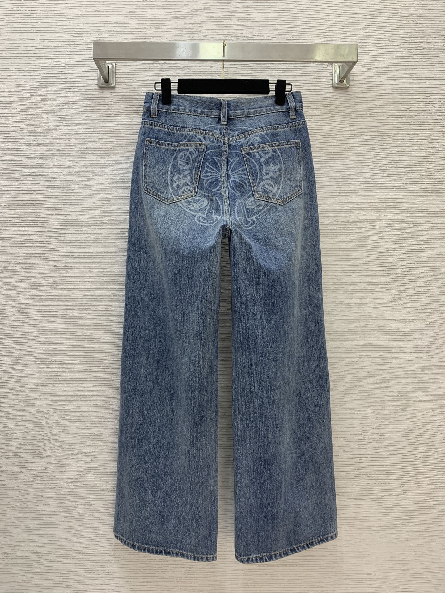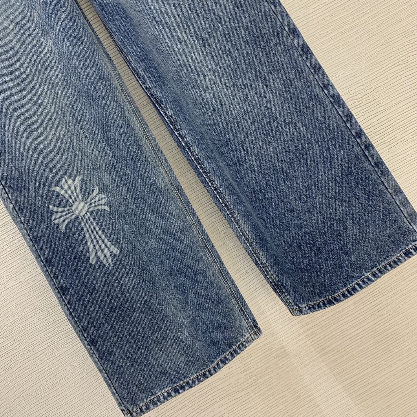 Style Number D25100957 Chrome Hearts* New Arrival High-end Custom Washed Denim Cotton Fabric, Classic Cross Print Back Hip Large Logo Badge Loose Versatile Wide-leg Jeans Trousers! SML (Size M: Waist 70 Non-stretch, Length 105)