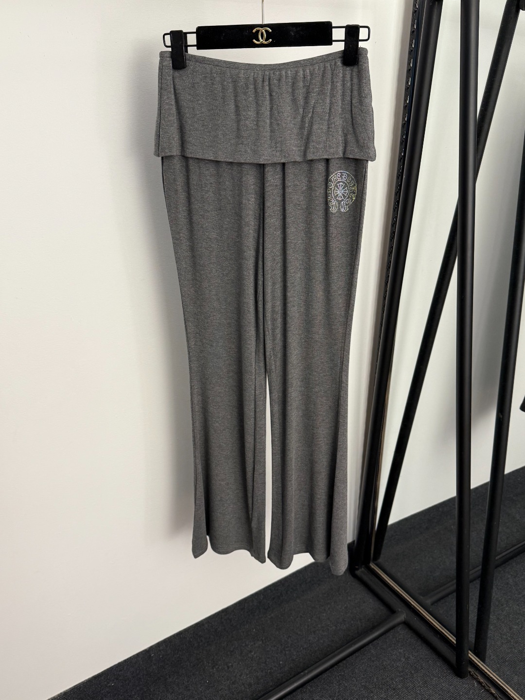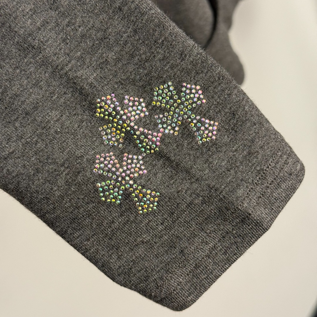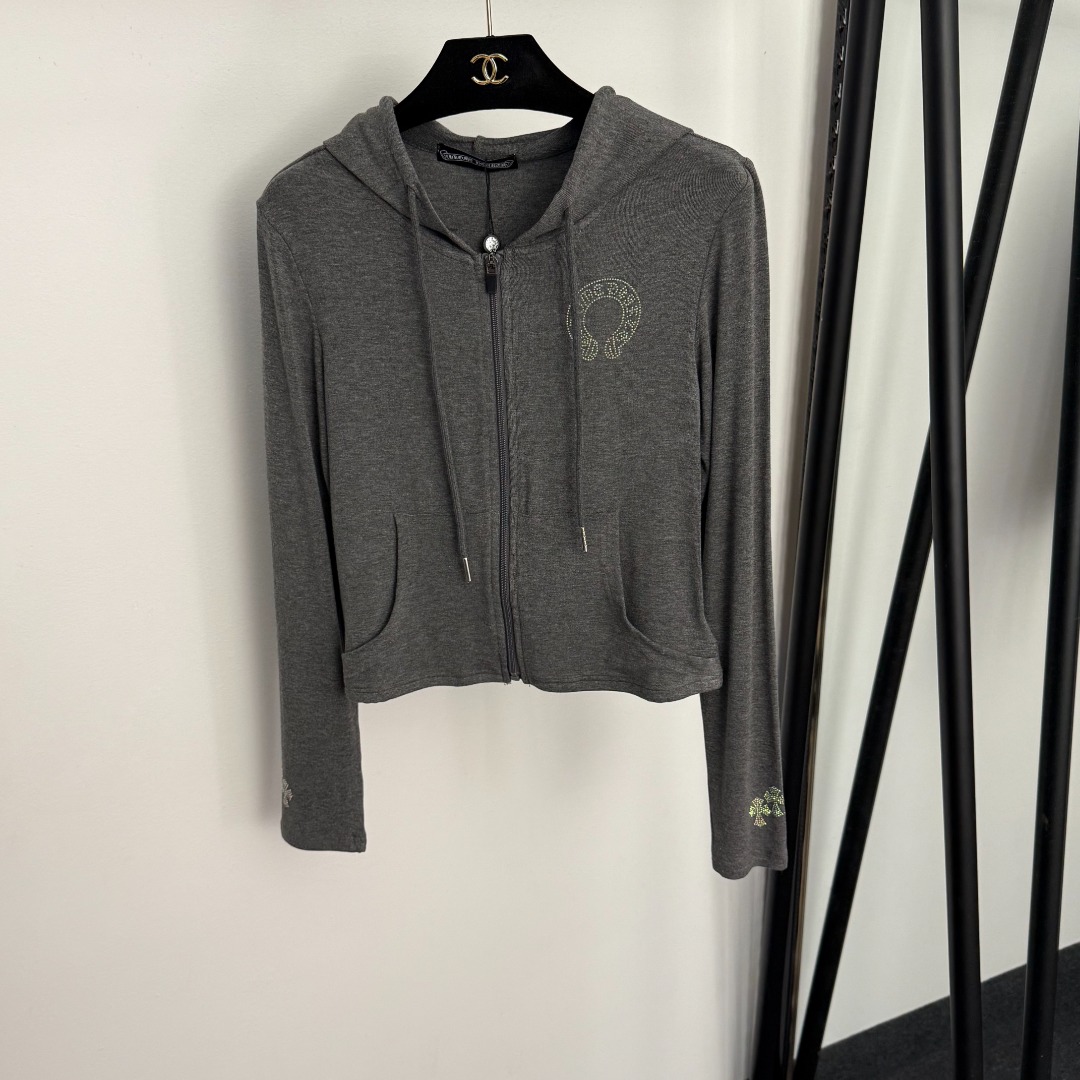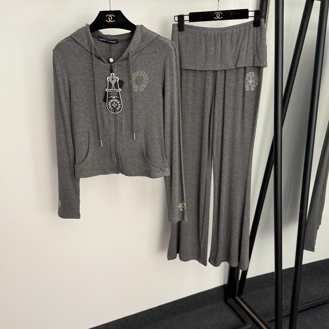 Item No. 20255797 Chrome Hearts* new sportswear set, Sanskrit hot-fix rhinestone cross pattern long-sleeve hooded zip-up jacket + false two-piece bell-bottom pants, gray, black, SML, [Size M: shoulder width 36, bust 82, sleeve length 58, length 47; waist 64 stretch, length 95; weight: 0.595kg]