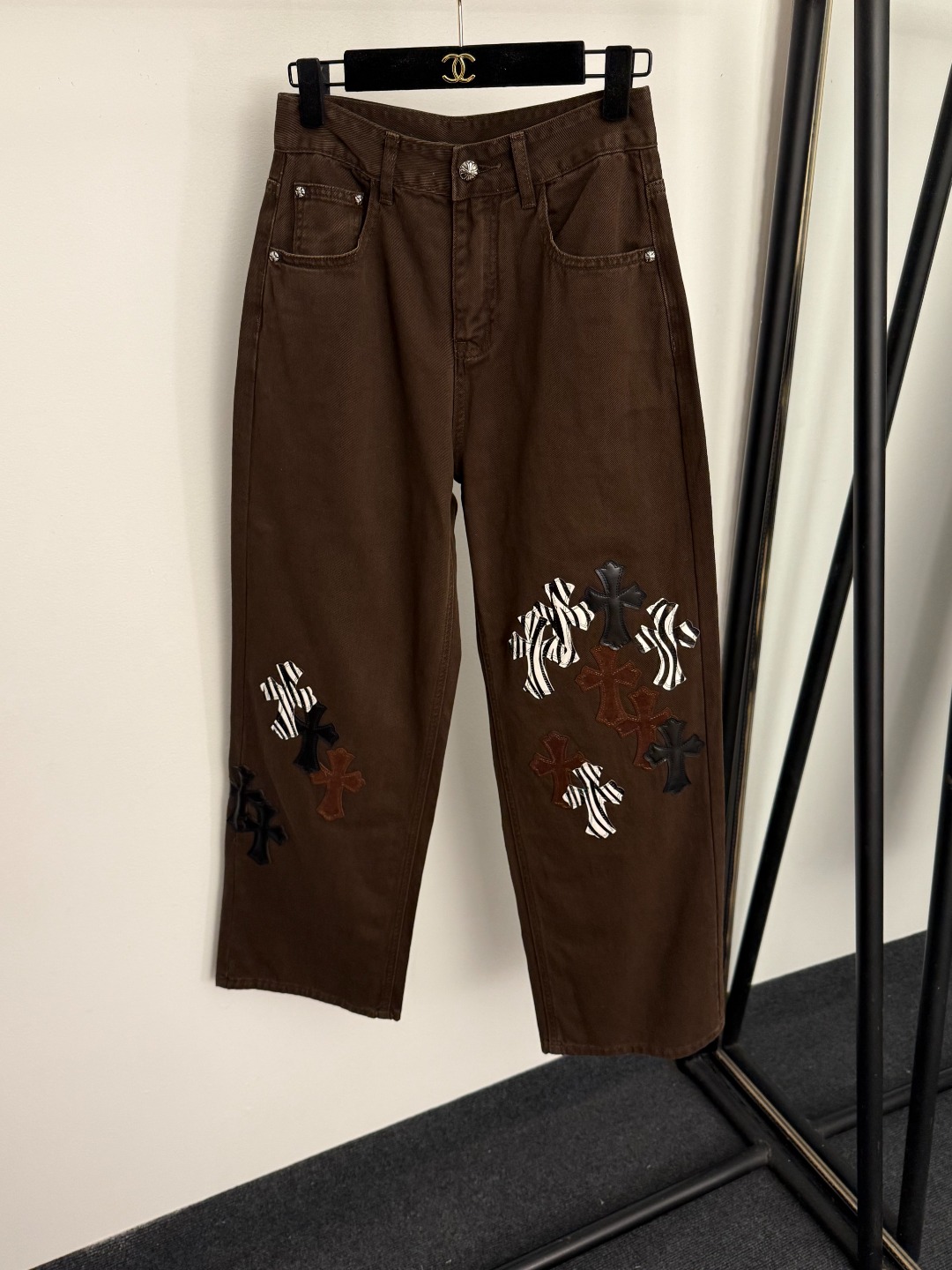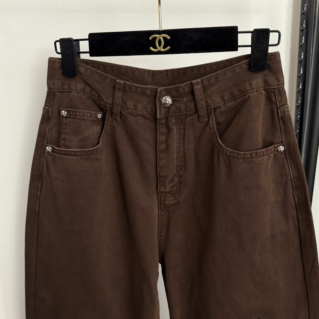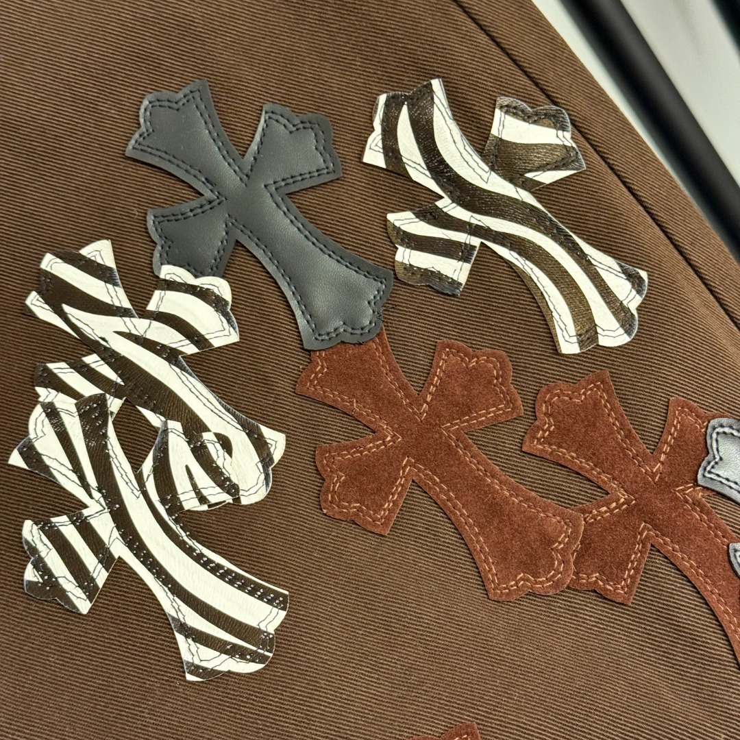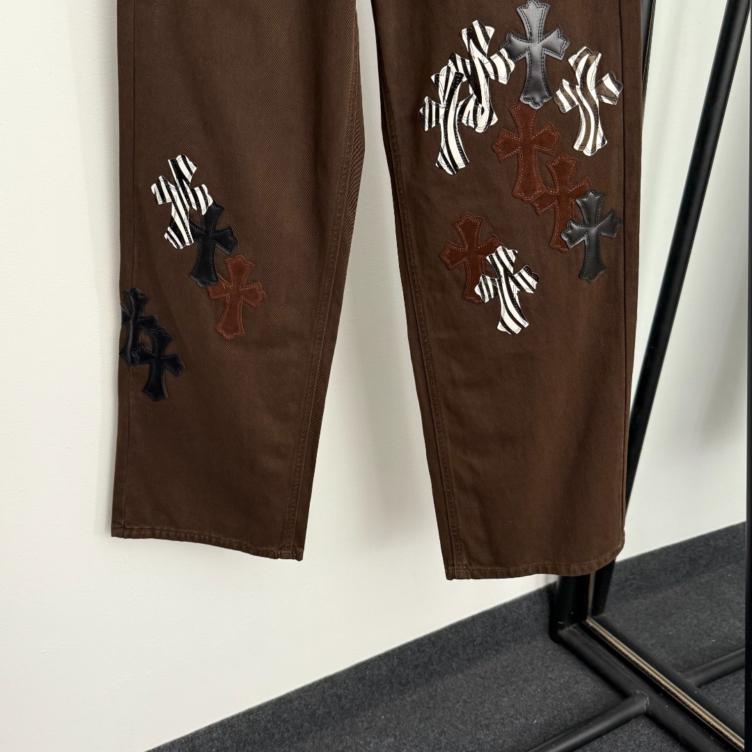 Item No. 20255715 Chrome Hearts* New Style Zebra Stripe Cross Embroidered Patch Fashion Denim Pants, Brown, S-XL, [Size M: Waist 70, Length 103; Weight: 0.545kg]