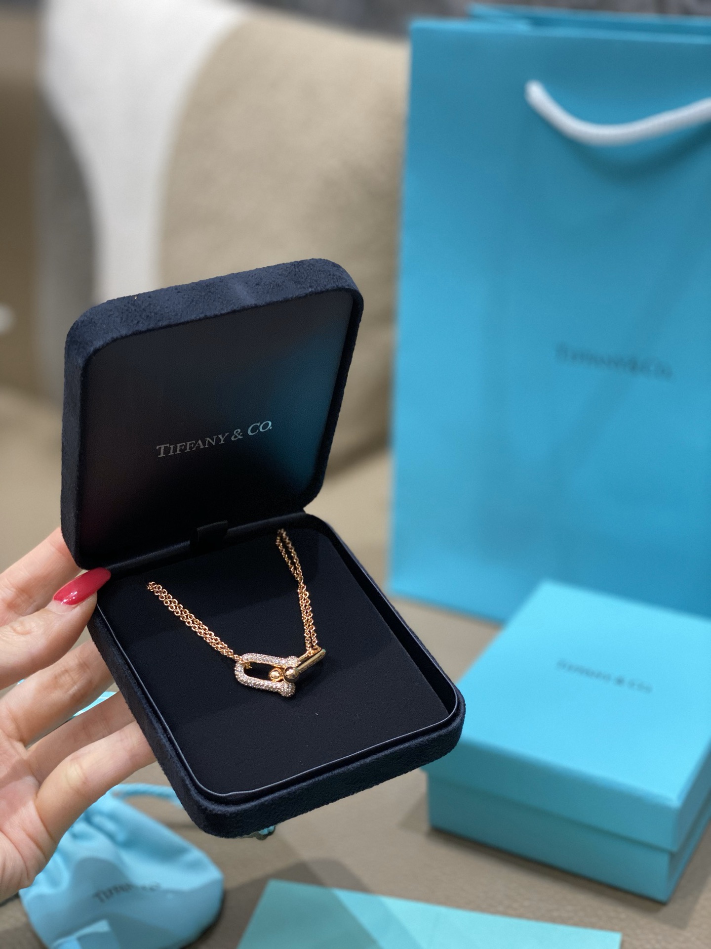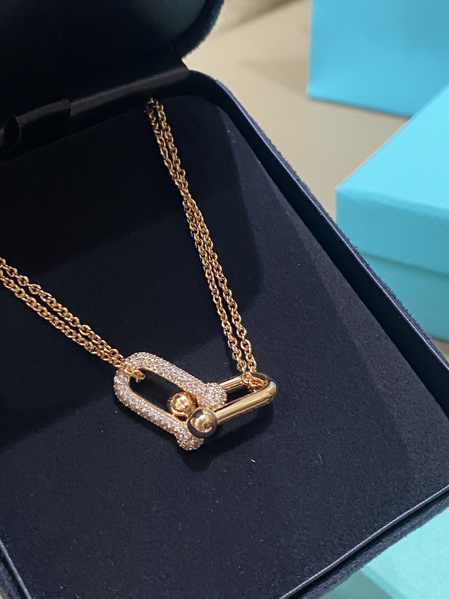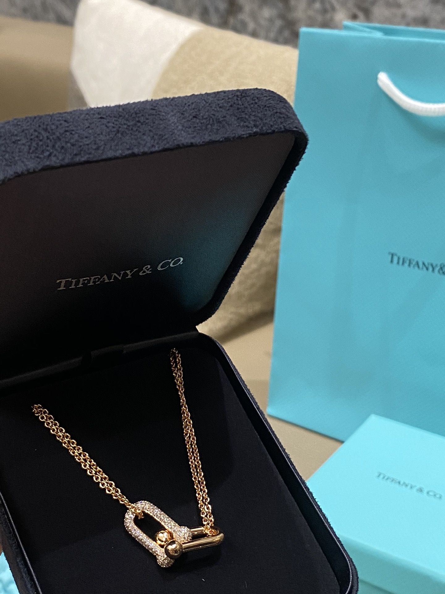 High-end V Gold Custom TF Double Ring Diamond Horseshoe Necklace Full Set Packaging