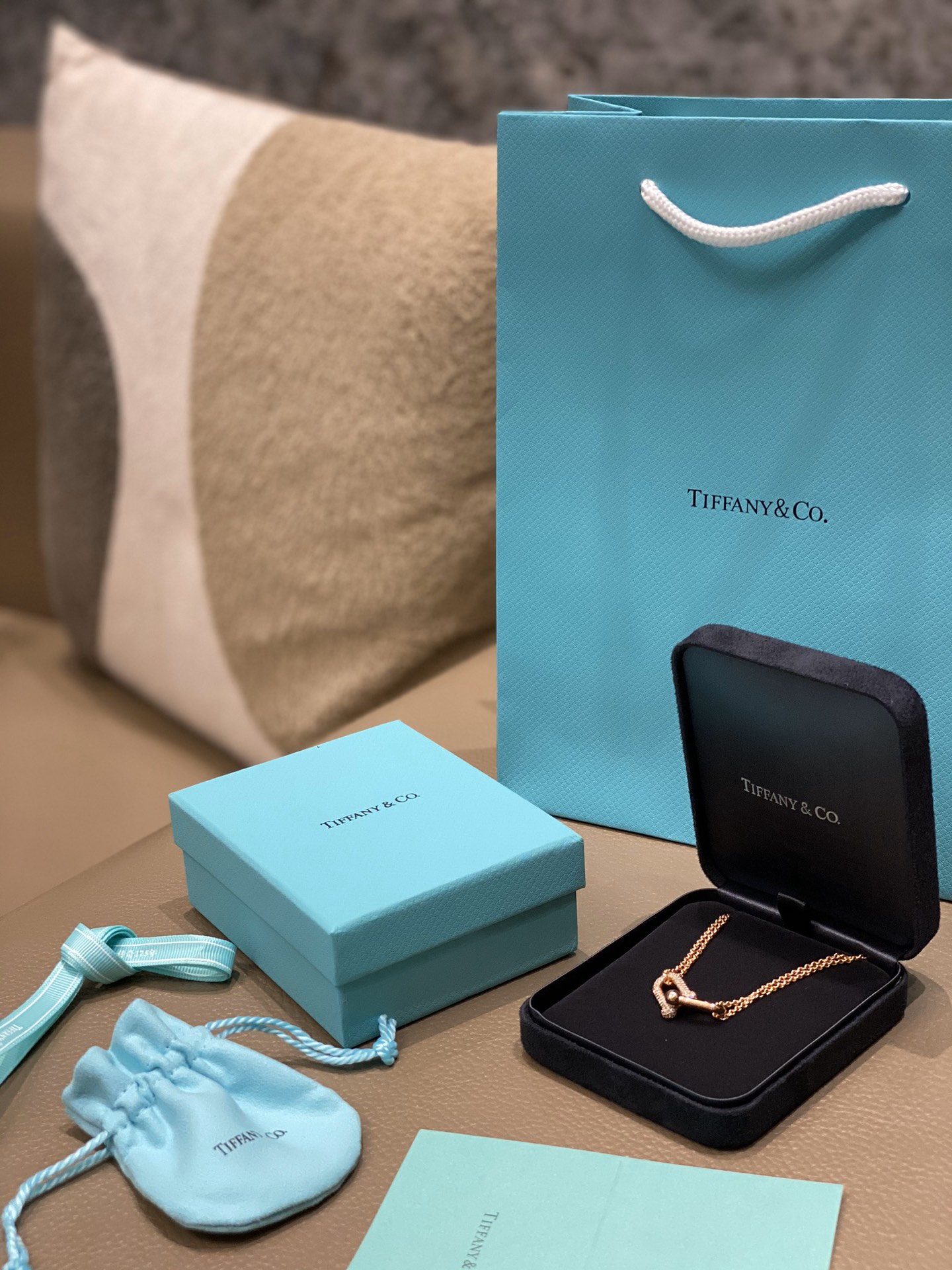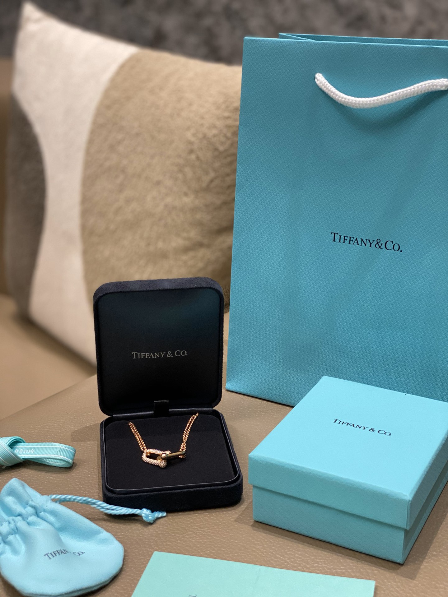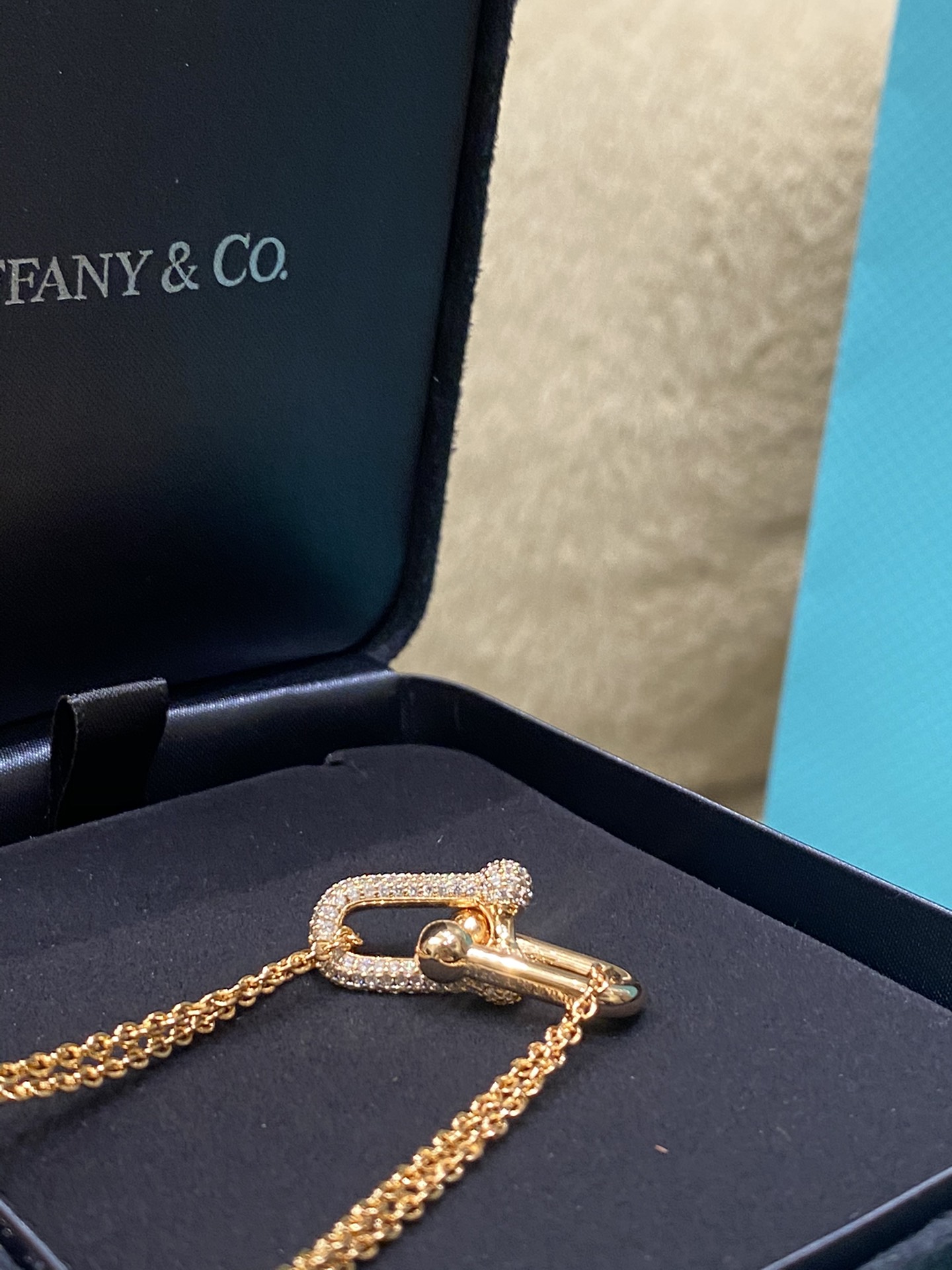 High-end V Gold Custom TF Double Ring Diamond Horseshoe Necklace Full Set Packaging