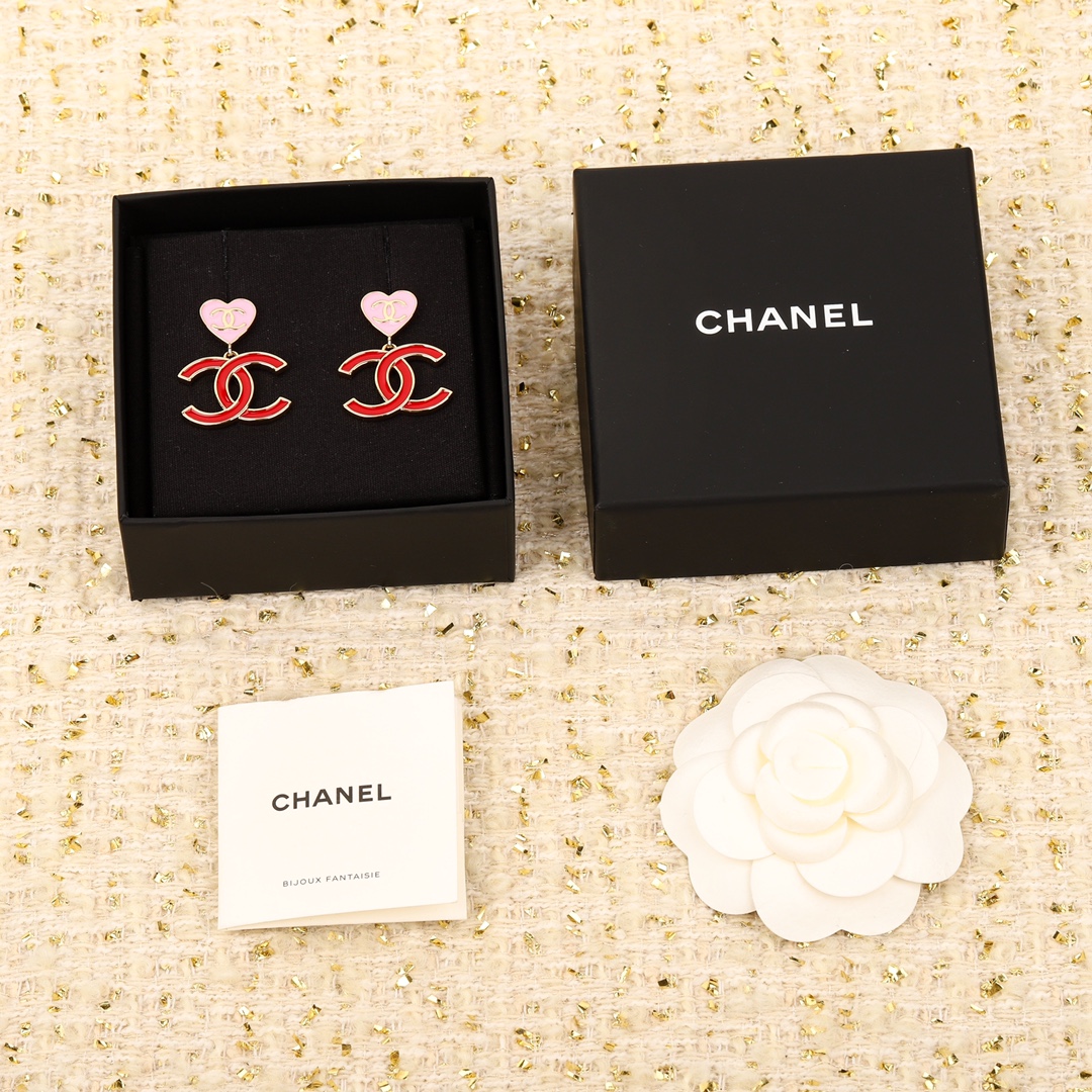 [Chanel][Enamel Heart Double C Earrings] 24A Métiers d'Art Collection The hit style is here! The latest stunning heart series! A must-have! Immediately purchased genuine product for development, currently in stock! First release across the entire network! As always, first come first served, the heart series is a must-buy every season! Love the small and exquisite size! The size is so cute! Specially customized imported enamel! Absolutely the white moonlight! Superb for daily styling!