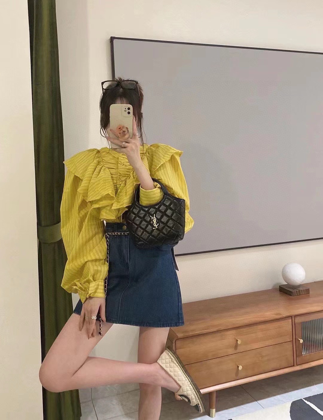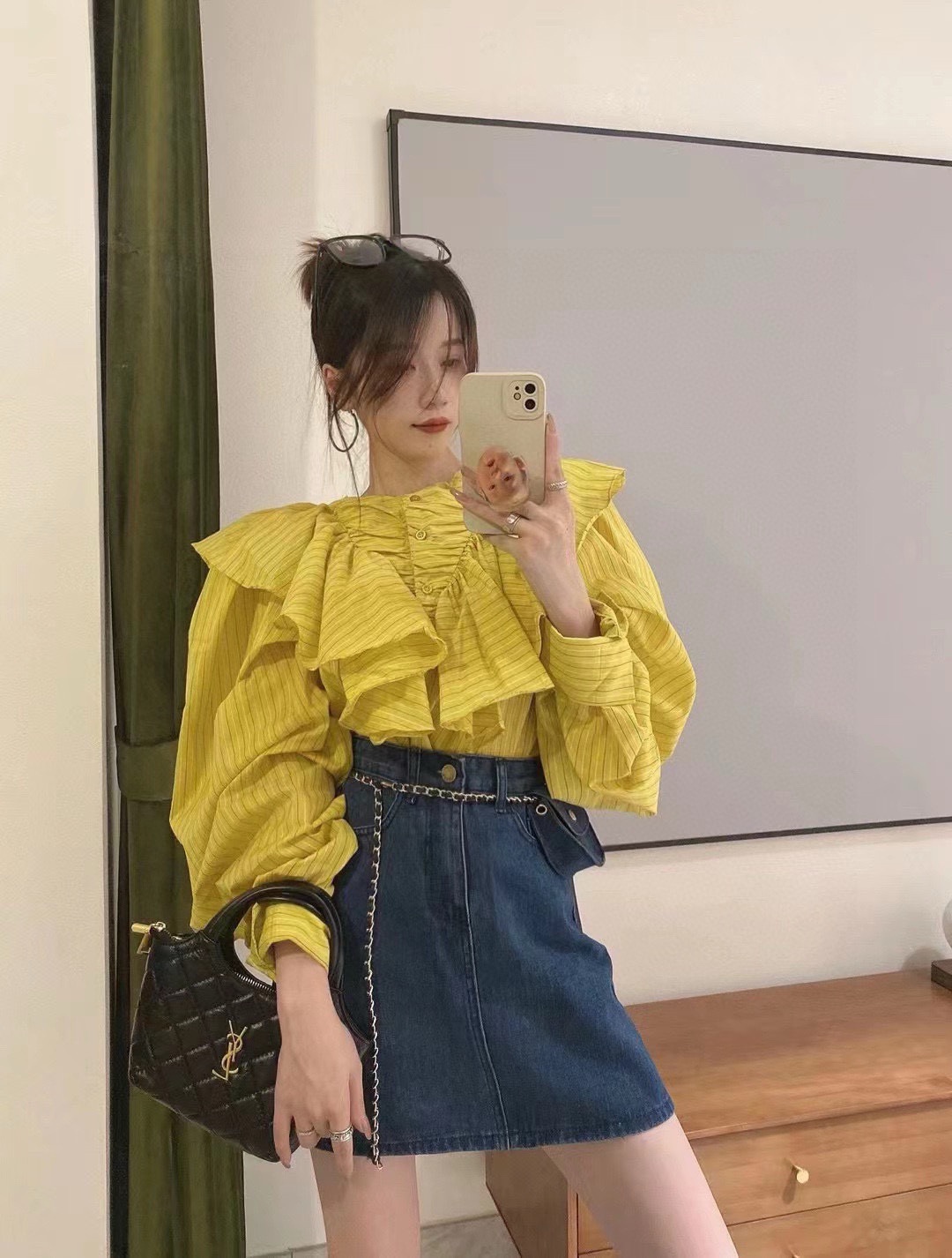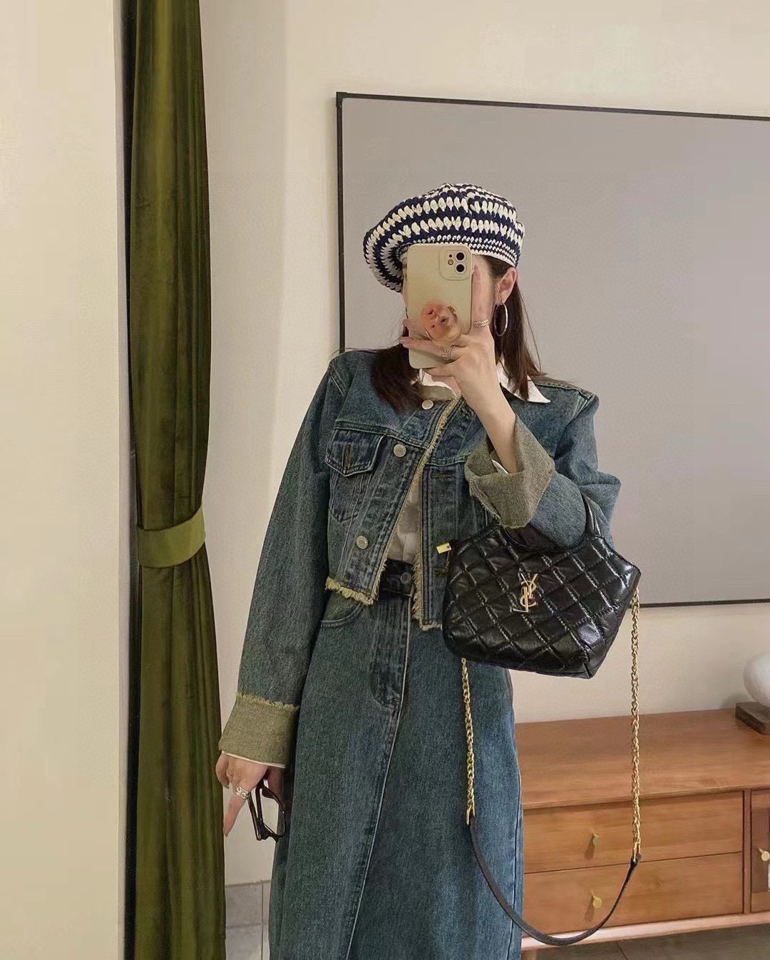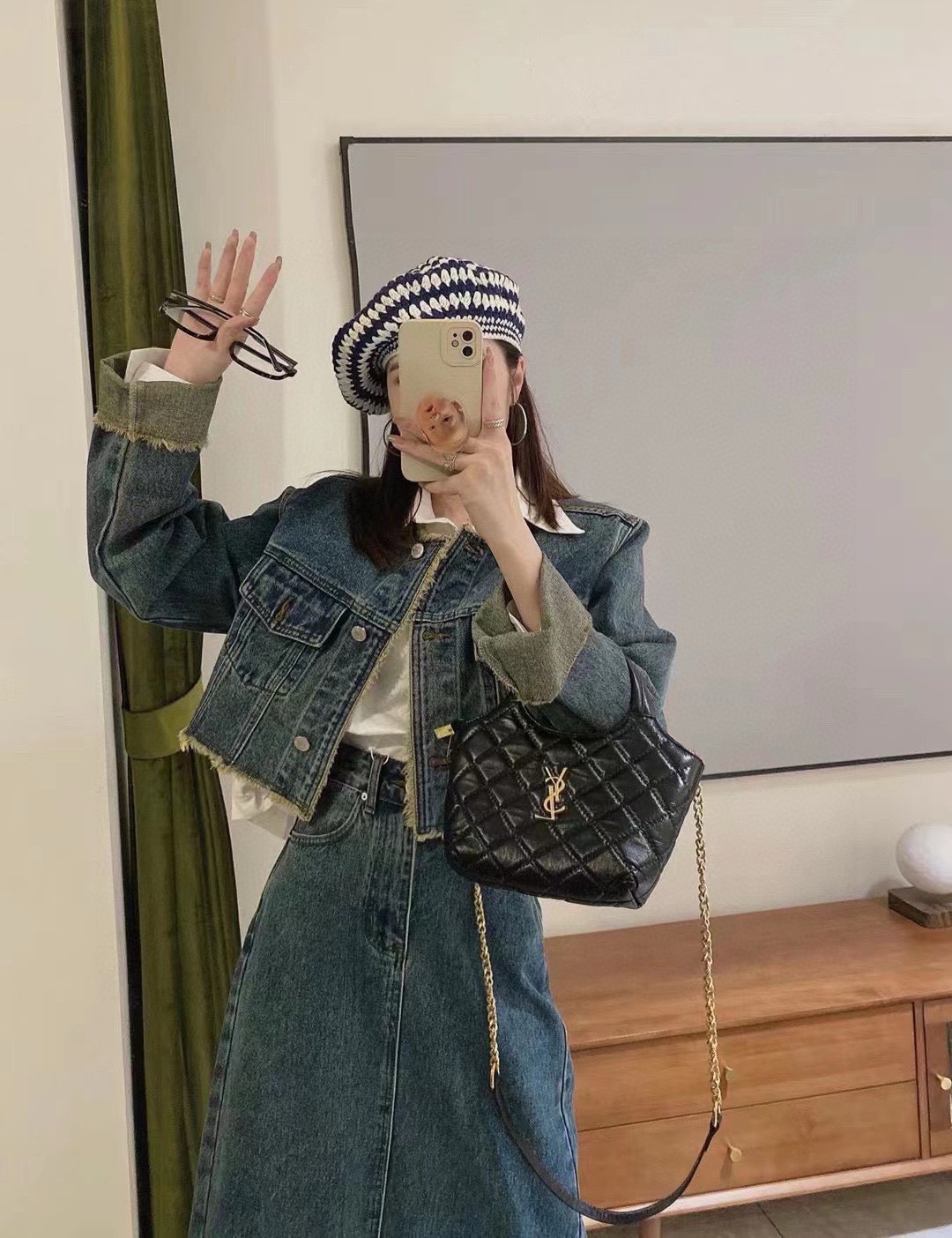 YSL early spring round bag with chain, elegant and versatile. Size 17.