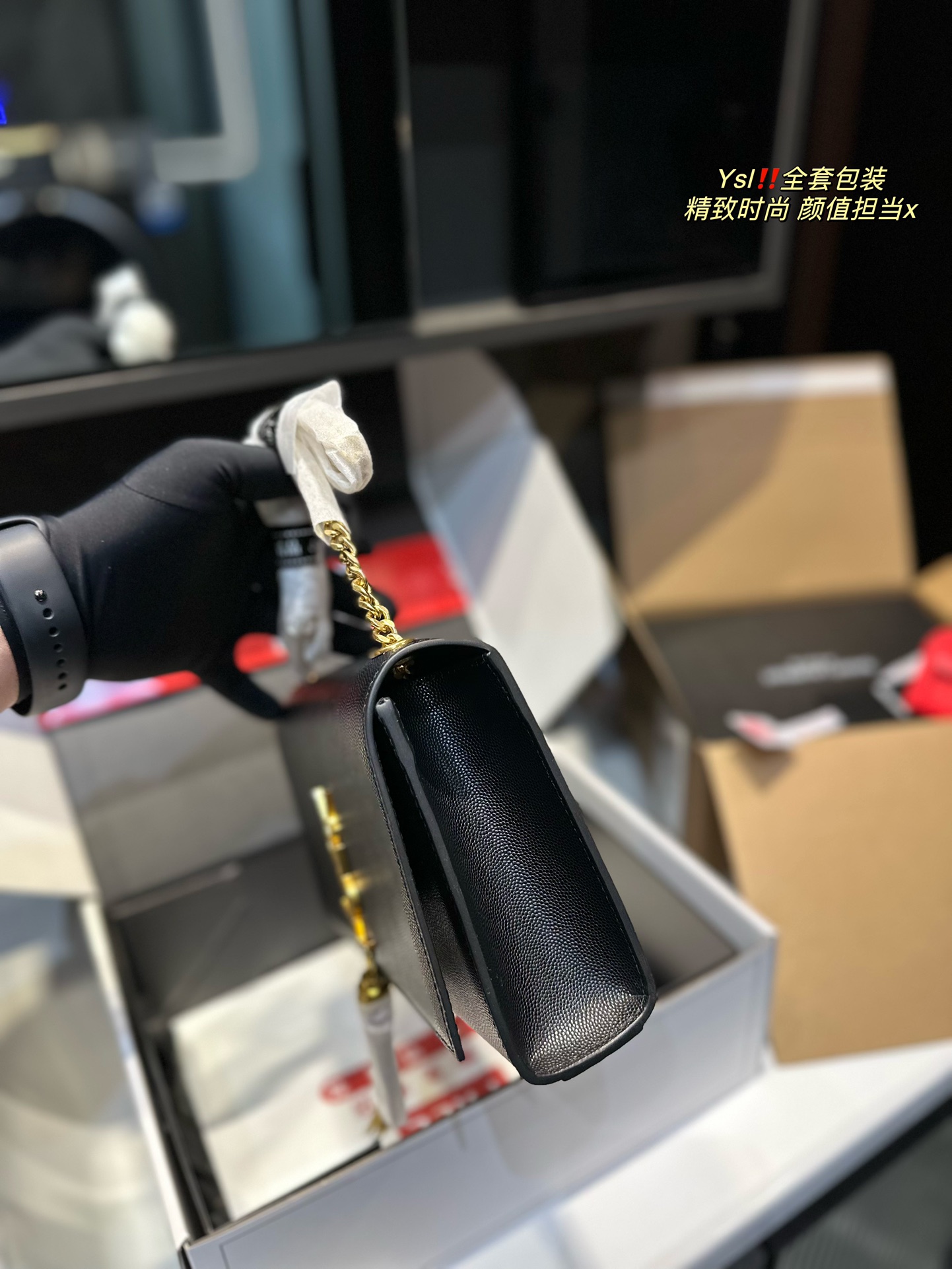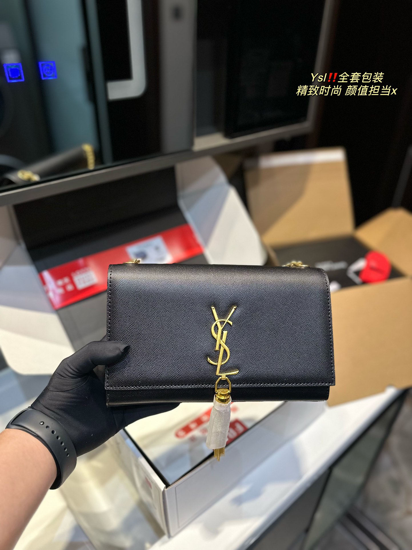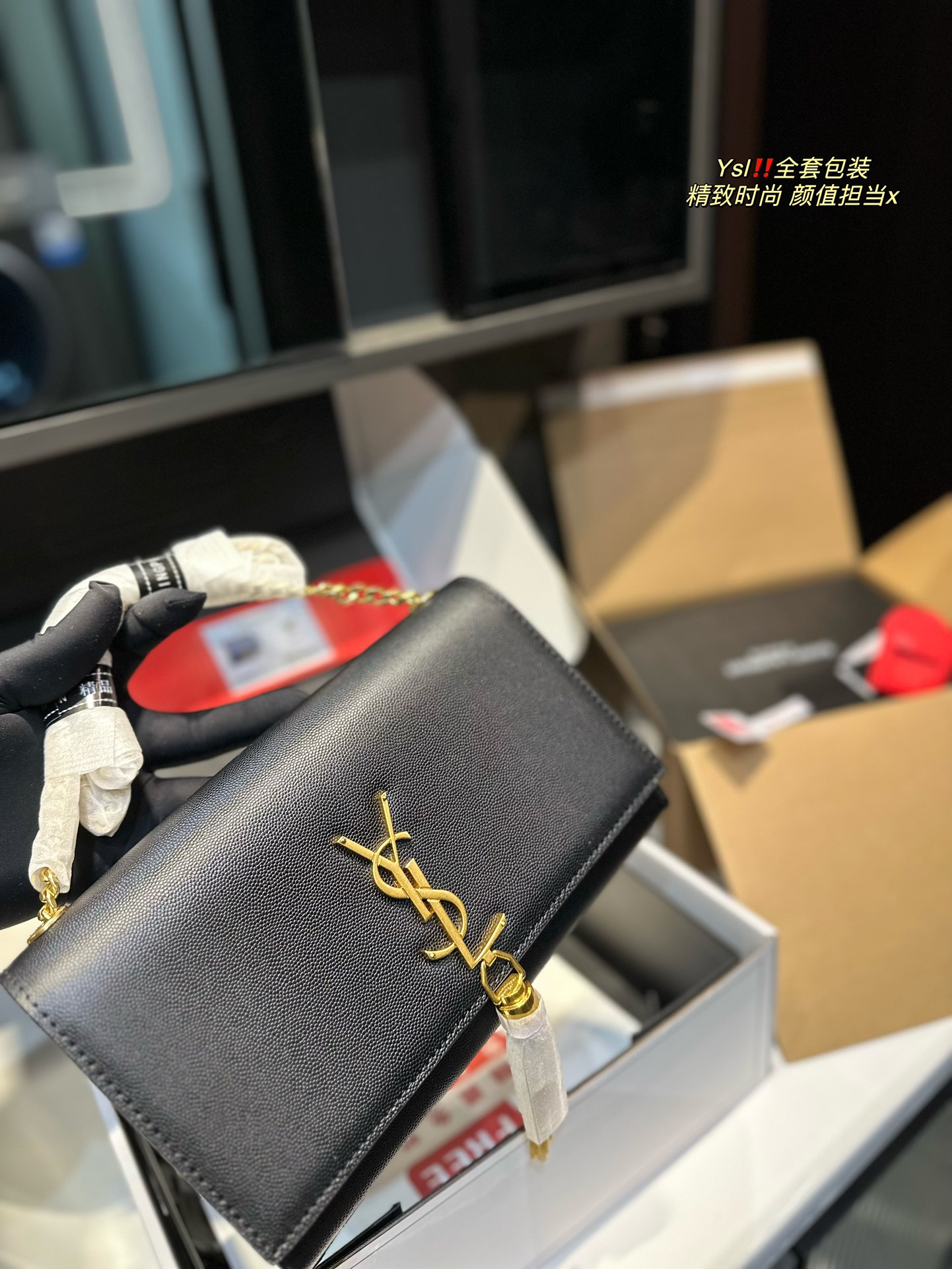 YSL chain bag KATE CHAIN AND TASSEL BAG IN TEXTURED LEATHER The latest, best, and most practical! The core design of this series is the YSL logo. Back then, Mr. Yves Saint Laurent invited poster artist Cassandre to design it—three letters layered together, simple yet avant-garde. Made from 100% imported cowhide with pressed caviar texture, wear-resistant and scratch-proof! Absolutely an eternal classic! Without a YSL tassel bag, you can't call yourself trendy! Dimensions: 23 15cm