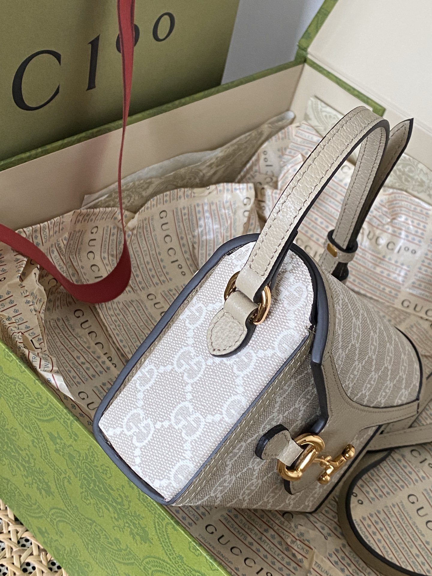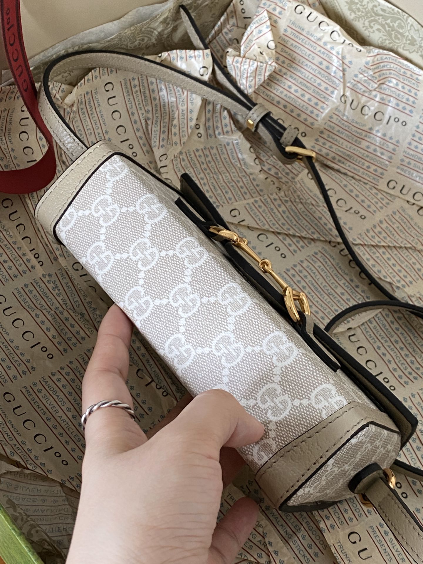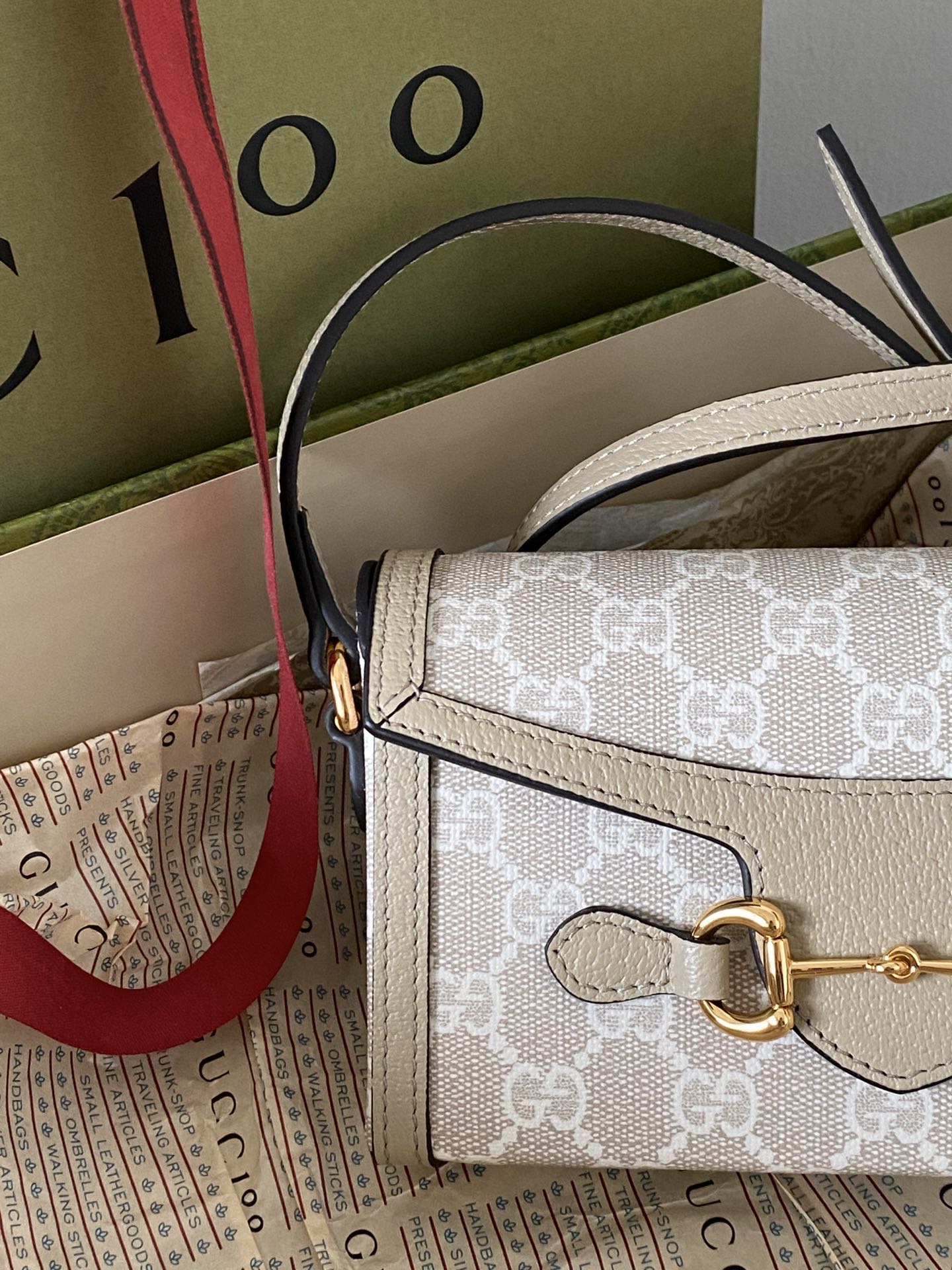 Oatmeal-colored leather paired with beige GG fabric, a brand new color combination that is soft, comfortable, and very seasonal. Light gold metal fittings, and the horizontal camera bag's capacity is even more impressive.