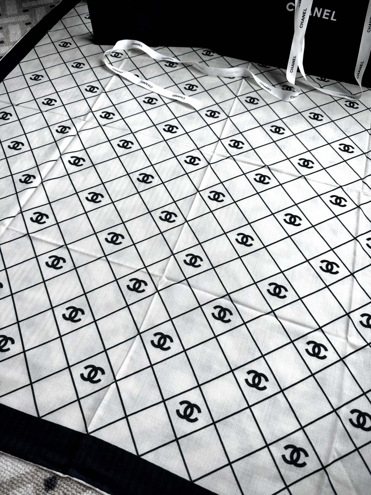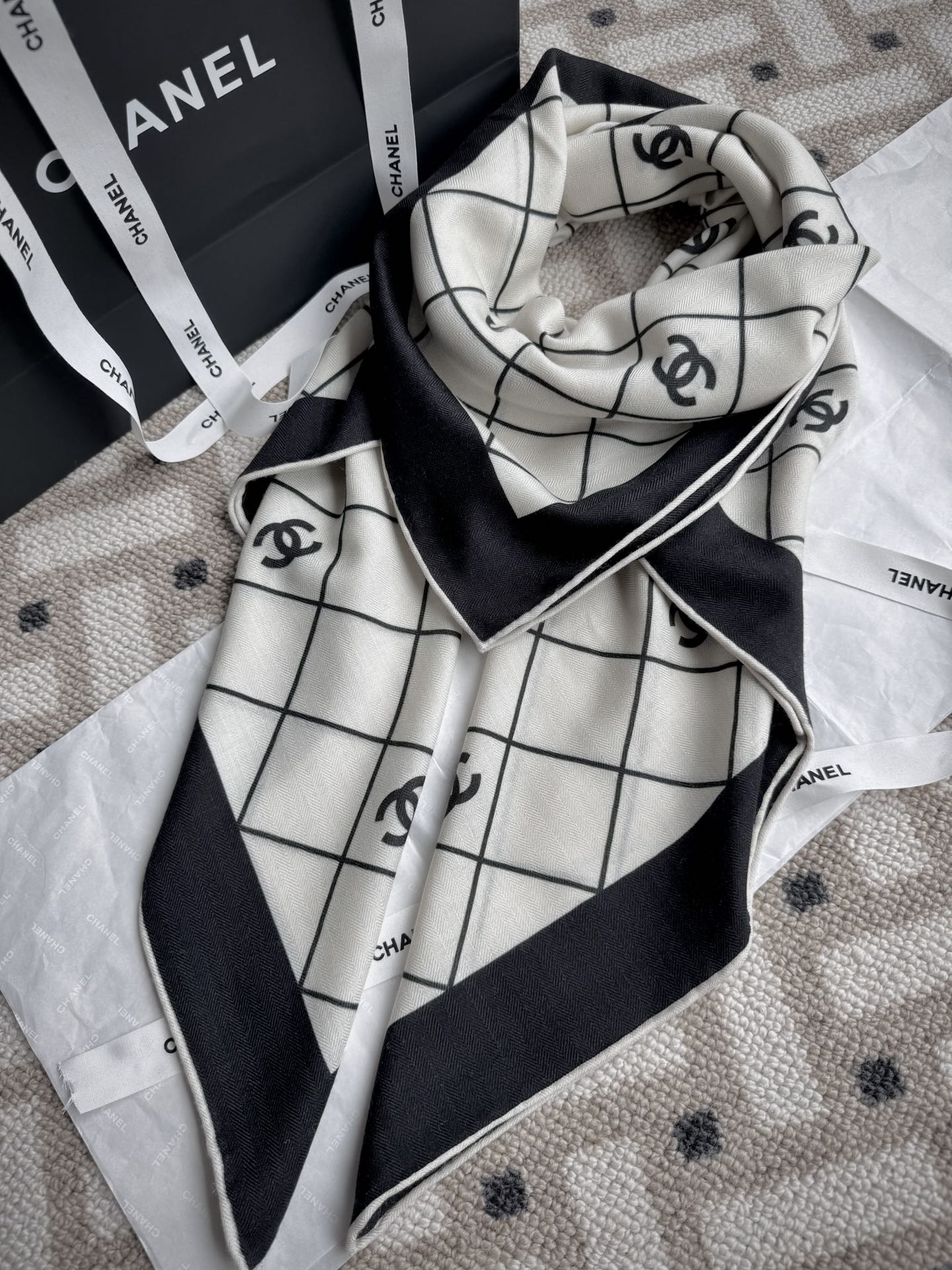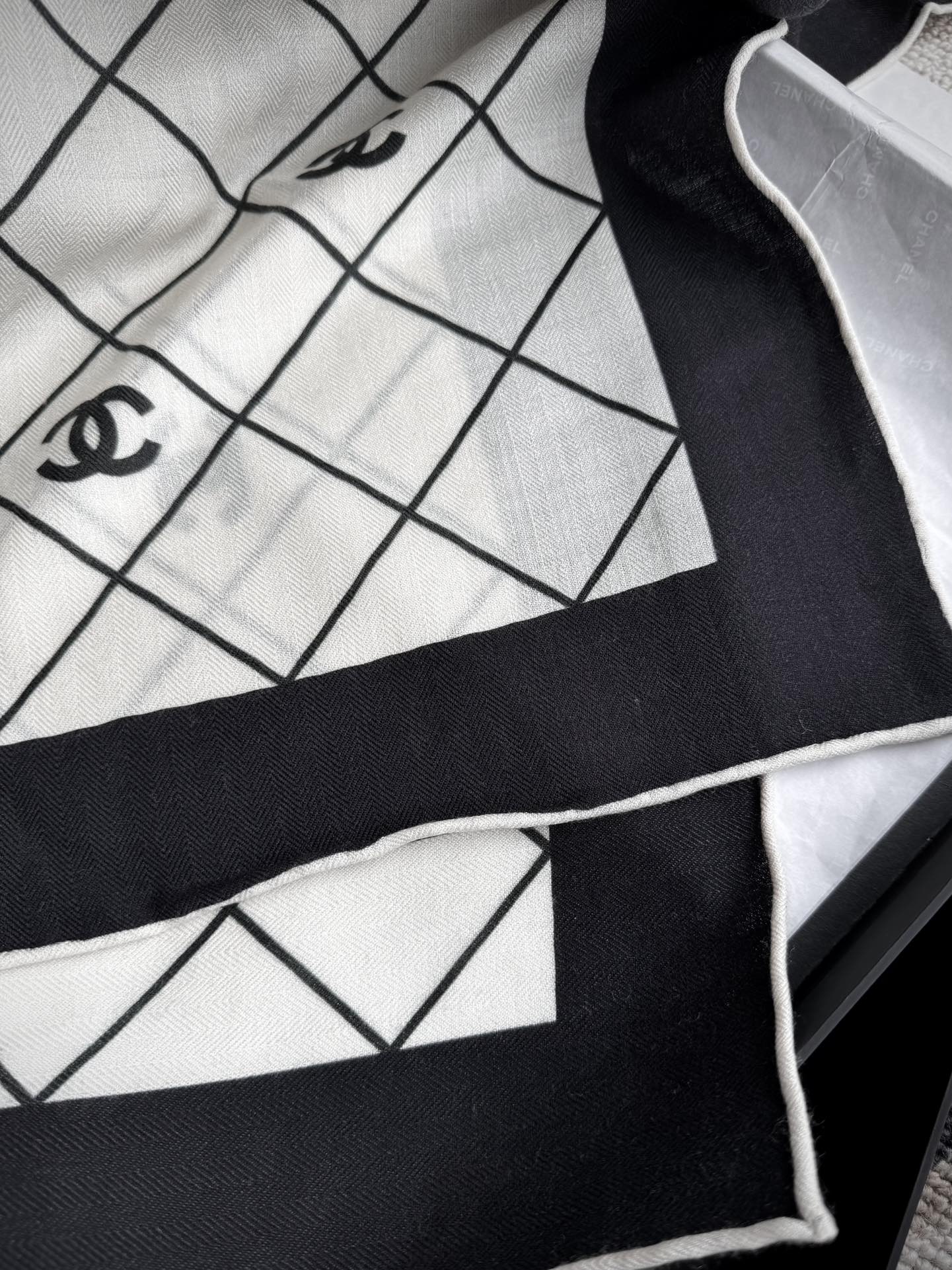 Original Title: . New Release 【Black and White Diamond ◇ Check】 Top Velvet Double-sided Same Color Printing Shawl