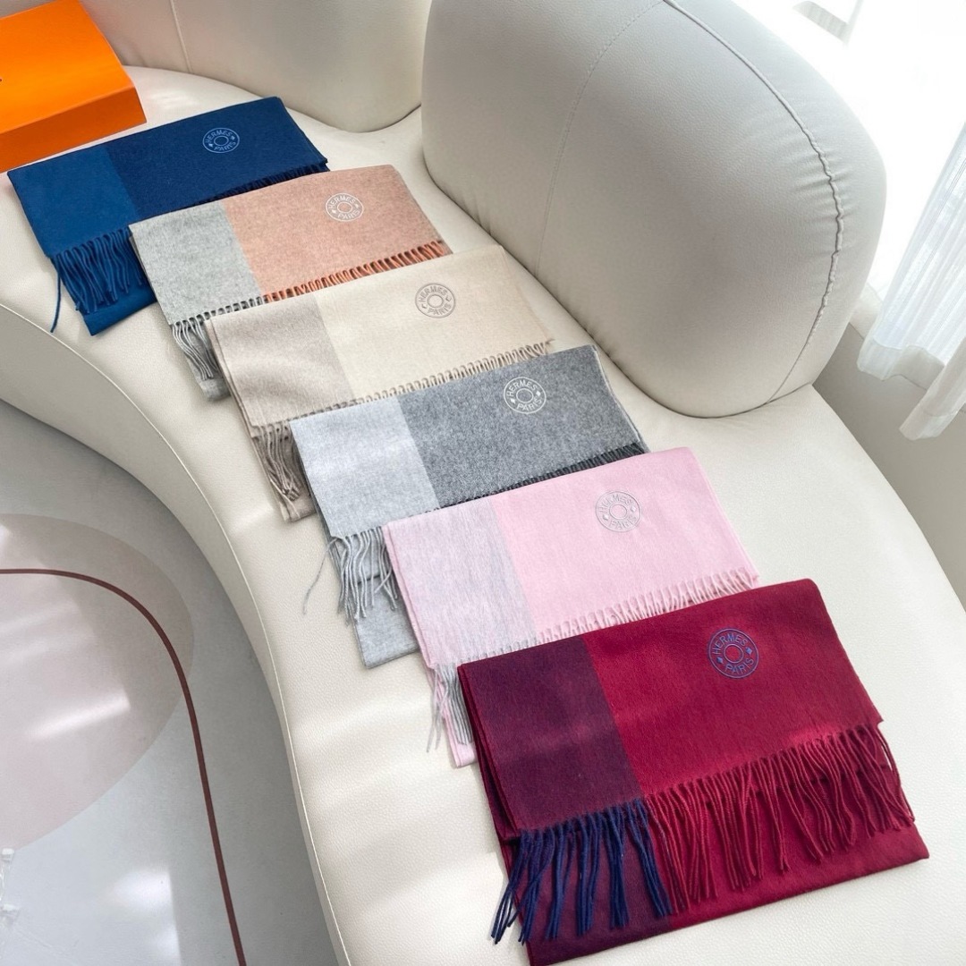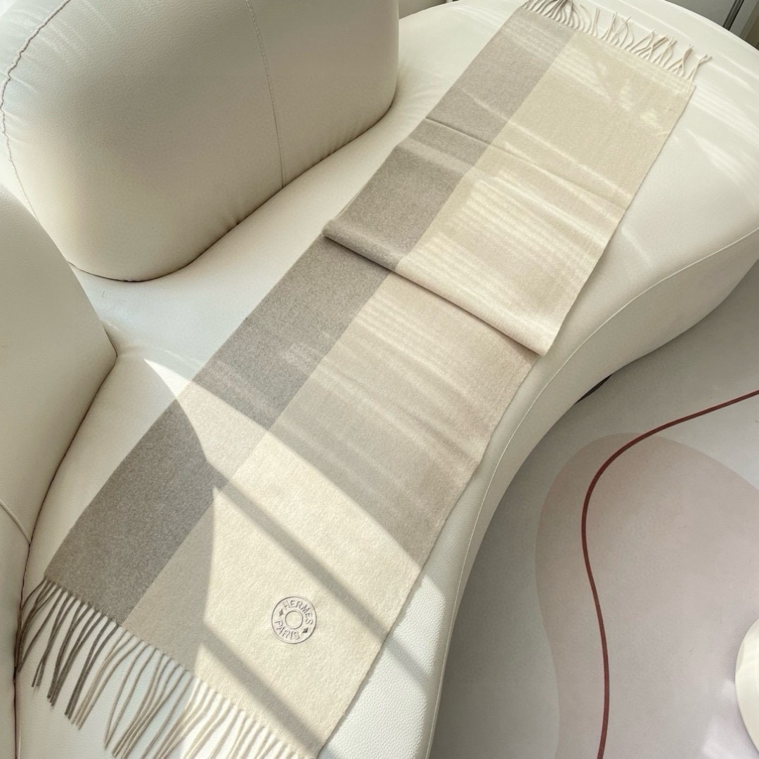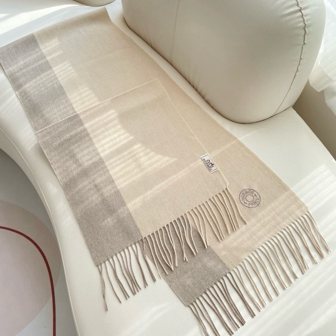 New 2025 Hermes men's and women's scarves, get them while you can~ These are export orders, so they're quite rare. The focus is on less but better quality~ You must get the good-looking ones~ This H-brand women's scarf has a very feminine style~ It's a very classical design among the men's and women's styles, classic and elegant. The fabric uses customer-supplied cashmere~ The fineness and softness are excellent, very beautiful. The wearing effect is incredibly good~ Simple and elegant, super beautiful color matching, a style any man or woman would love~ The small logo adds a very delicate touch! Has texture without being showy~~ Suitable for both formal and casual wear~ Can be folded and draped or wrapped around the neck, both work perfectly, gentlemanly and stylish~ A风度 with warmth. Material: Cashmere, Dimensions: 32x200