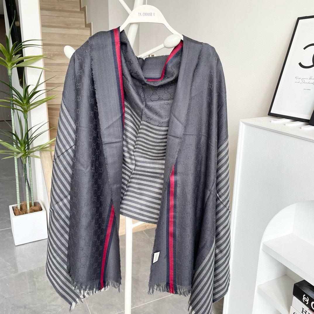 Gucci's latest counter collection for 25 years‼️ You can see for yourself how authentic the product is. This piece doesn't need too much flashy language. Woven jacquard checkerboard technique, satin stripe technique—two techniques combined in one scarf, something that can't be achieved without top-tier craftsmanship. This style should have already arrived at major counters domestically. Whether it's the weaving or the jacquard, both are executed perfectly, with details visible throughout. The entire scarf gives off a luxury brand aura while being very refined and high-end—a new release absolutely worth getting. Suitable for both men and women, 90 x 200 cm. 100% cashmere…