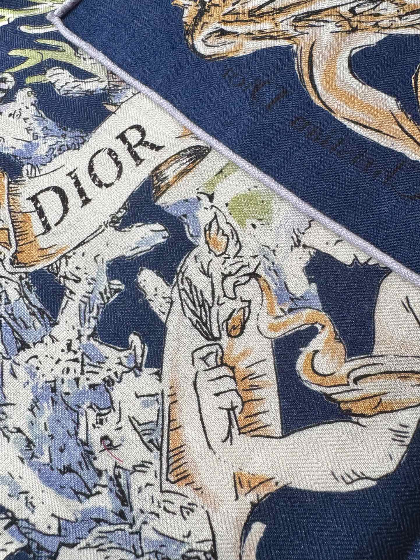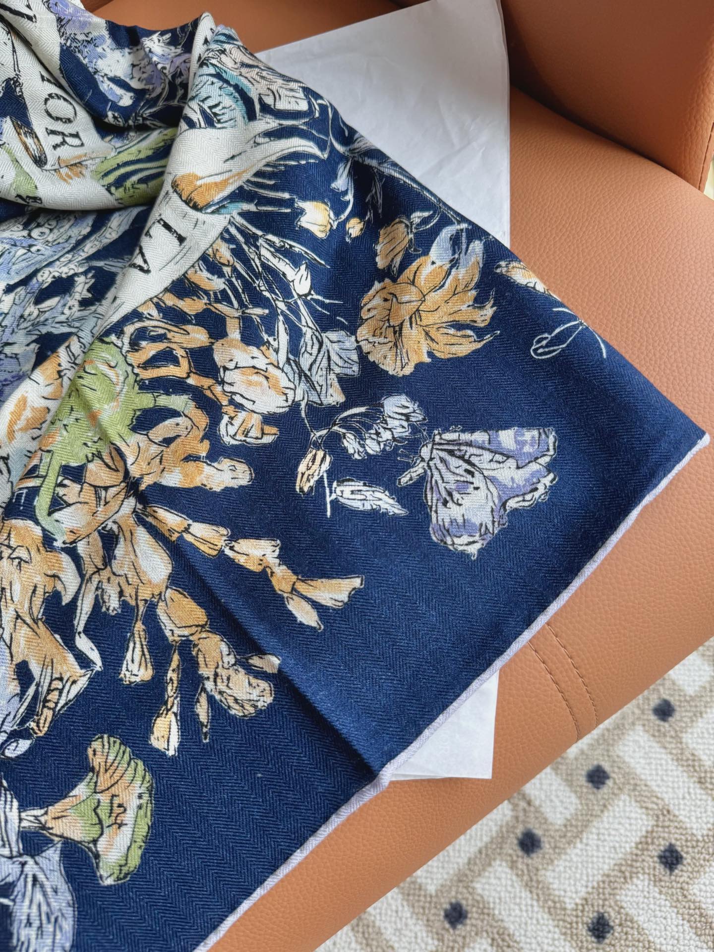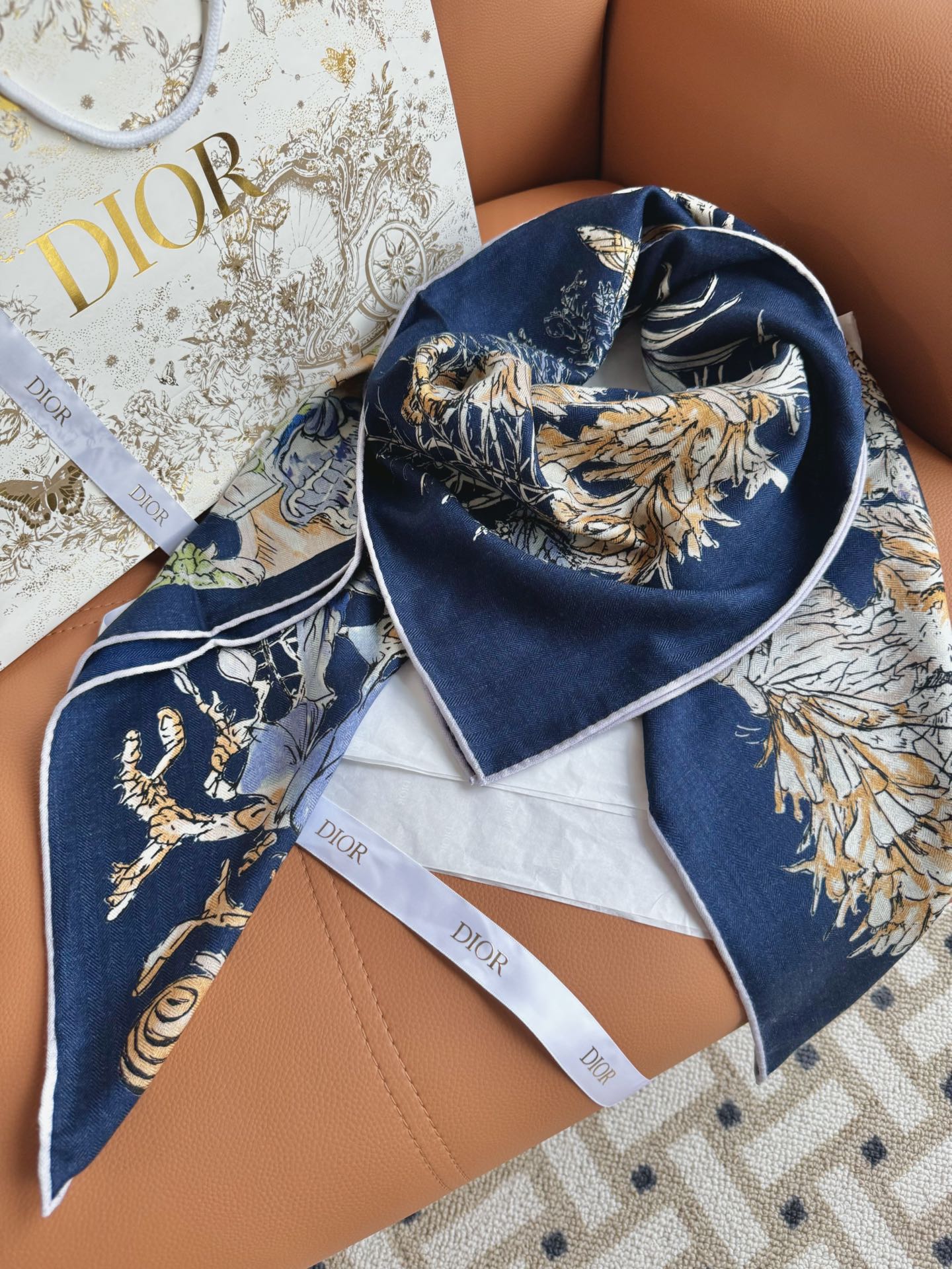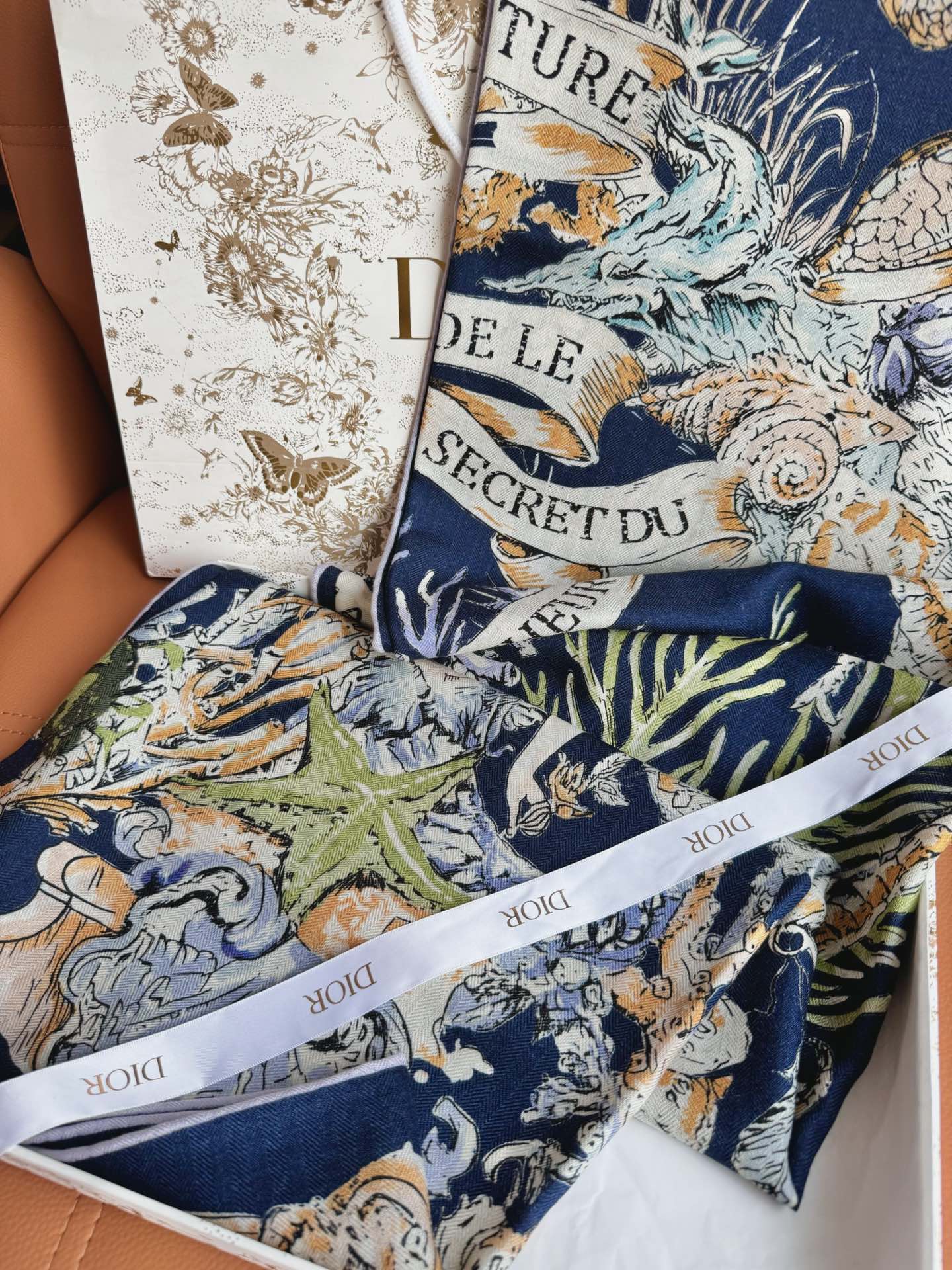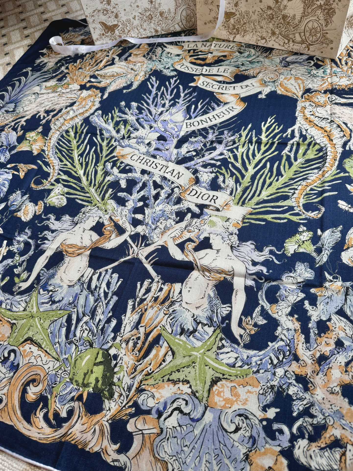 . New Dior Printed Scarf - 25 Autumn/Winter New Collection [Top Velvet Double-sided Same Color Scarf Shawl] Navy Blue Silk Twill Fabric Multi-color Dior Cabinet de la Mer Pattern