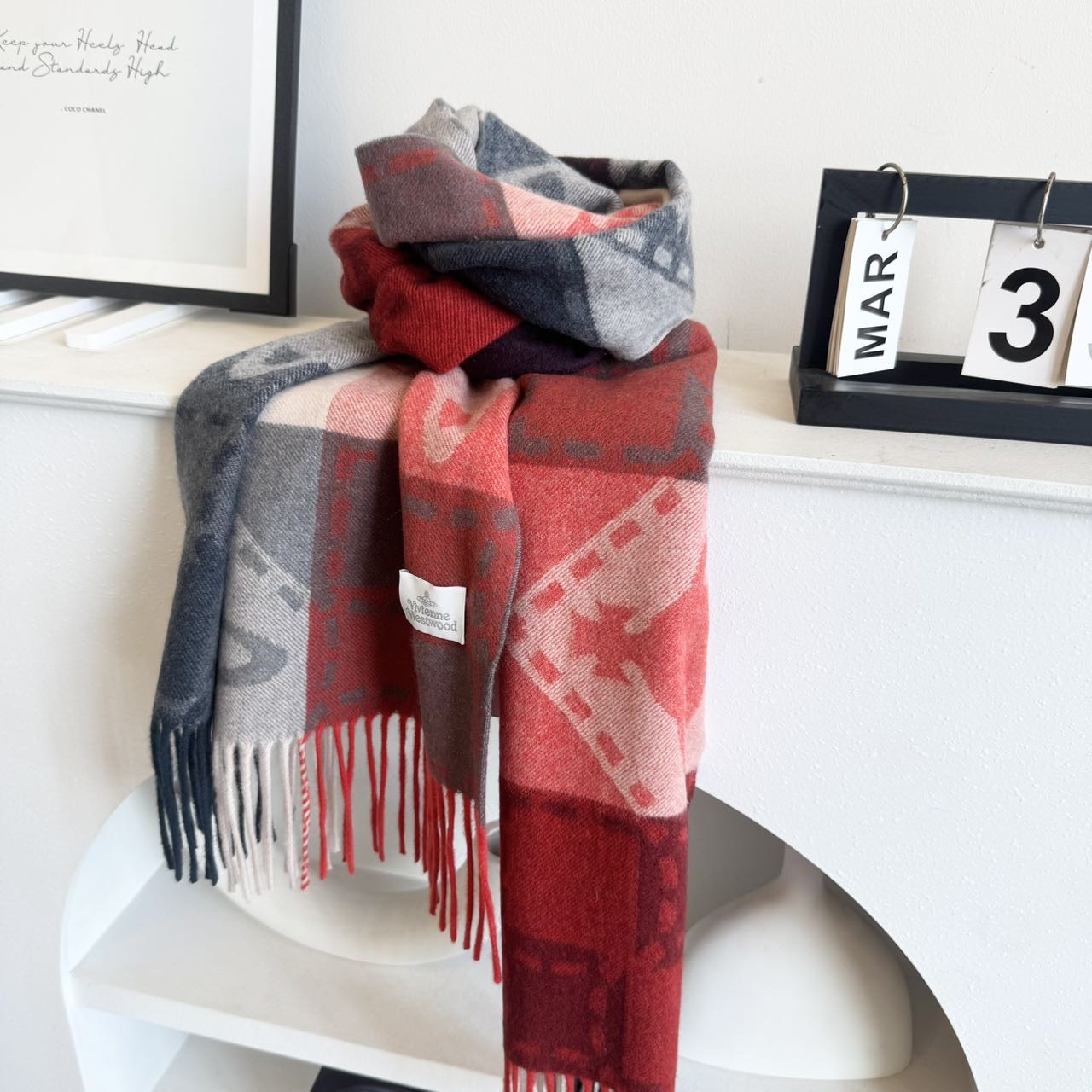 Classic large Saturn scarf, Vivienne Westwood Saturn. British fashion designer, the punk mother of fashion! Fashion-forward style, strong quality, super beautiful design! Simple and elegant embroidered logo, exquisite. This style doesn’t need to worry about looking bad, because the classic elements and trendy new design make it a perfect gift choice, fully showcasing personal style. The quality is excellent; the entire accessory gives a luxury vibe while being very delicate, elevating one's overall level. Definitely worth getting! Size 50*180