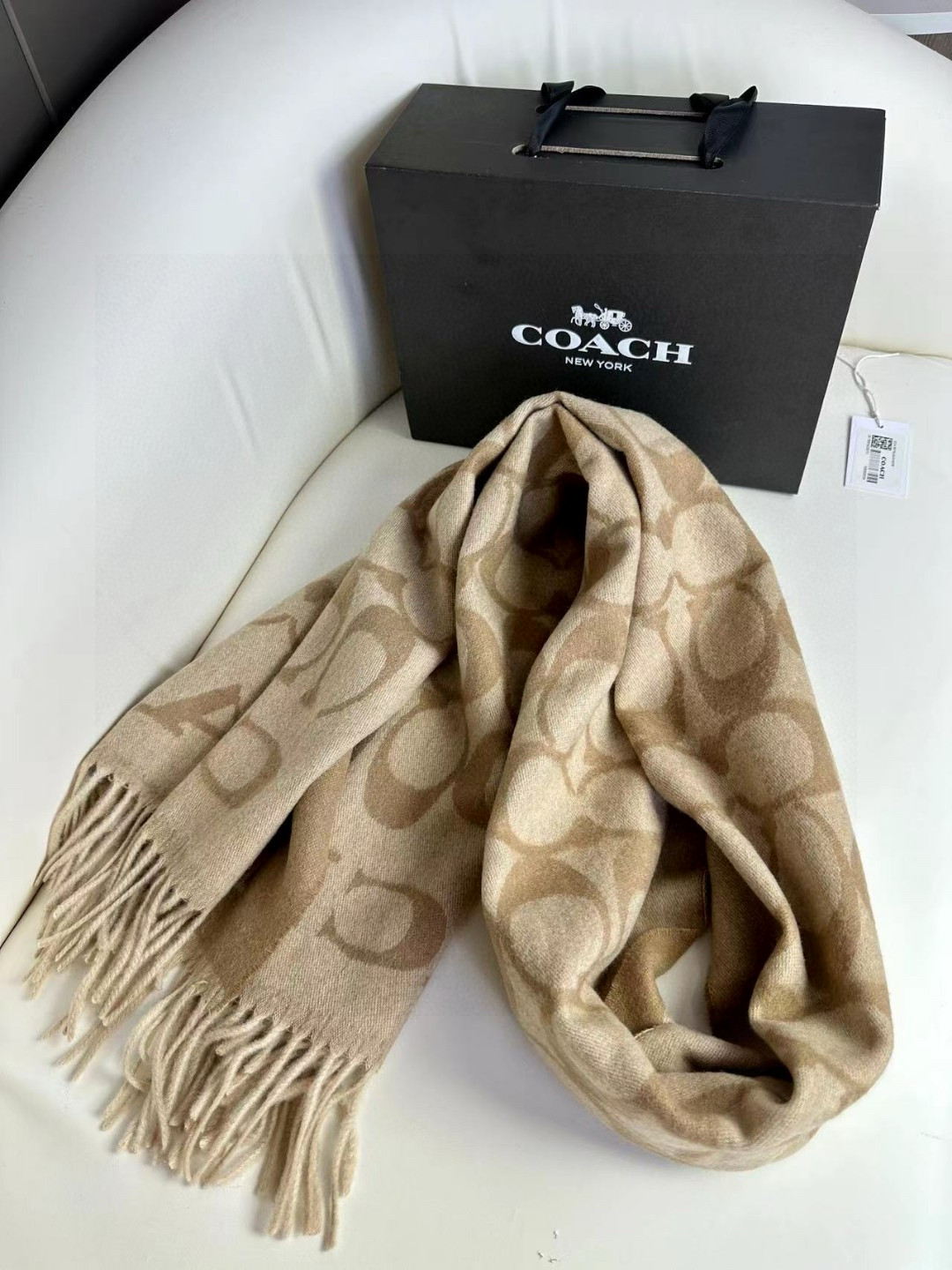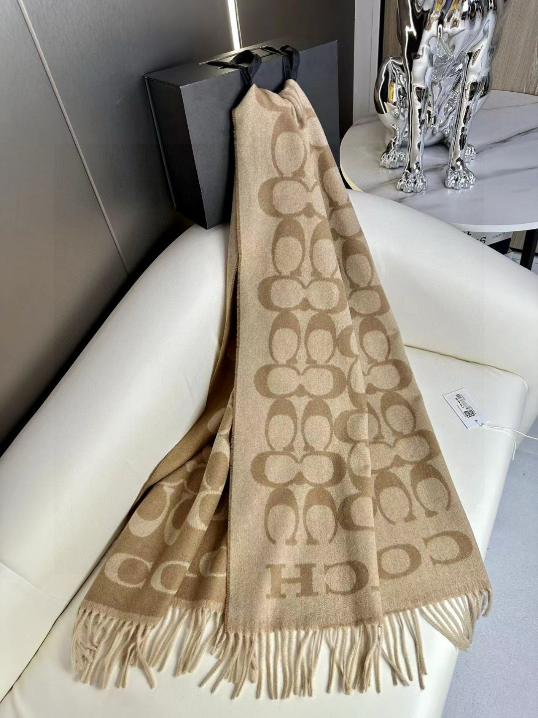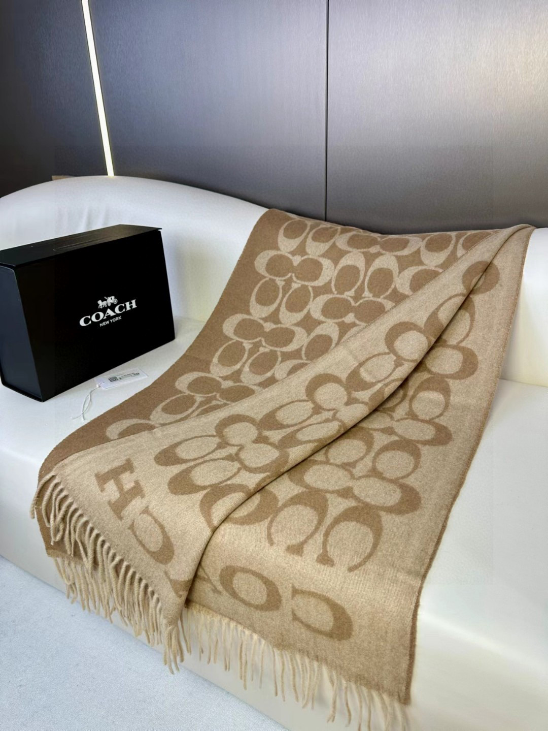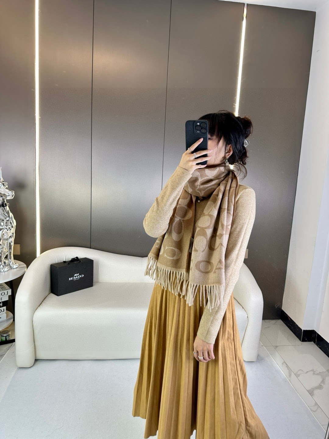 Coach's 2023 new arrival! Coach's hit product! The three-color shawl is so beautiful! Not only stylish but also high quality, 97% wool + 3% cashmere, super soft and comfortable to the touch. Dimensions 195×53cm, the overall width is decent, making it a small shawl. The front and back are complementary colors, one side has a dark logo on a light background, the other side is the opposite color. For autumn and winter scarves, you must go for this one!