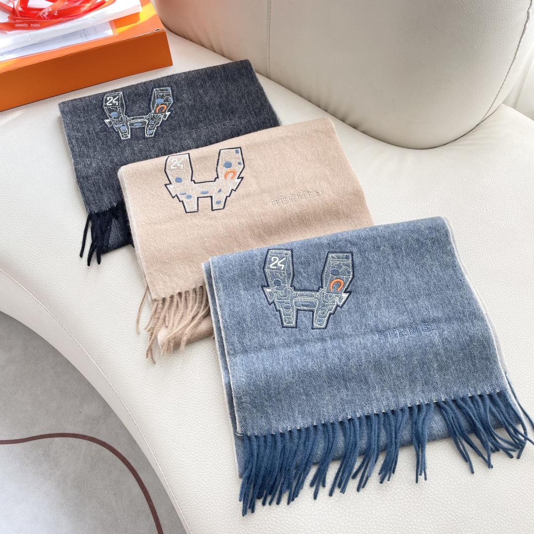 New 2025 Hermes men's and women's scarves, get them while you can~ All are export orders, so they're quite rare. Focus on less but better quality~ Must-have if it looks good😎 This H-brand women's scarf has a very feminine style😎 It's a very classical design among the men's and women's styles, classic and elegant. The fabric uses customer-supplied cashmere💕 The fineness and softness are excellent, very beautiful. Looks incredibly good when worn‼️ Elegant and simple, super nice color matching, a style any man or woman would love💕 Small logo adds a very delicate touch❗️ Has texture without being flashy~~ Suitable for both formal and casual wear~ Can be folded and draped or wrapped around the neck, gentlemanly and stylish~风度 with warmth. Material: Cashmere, Size: 32x160