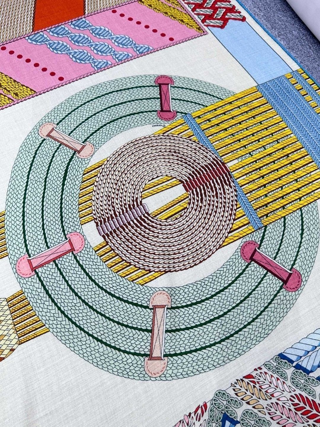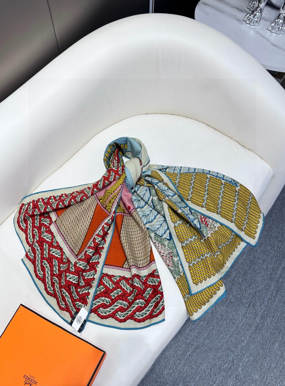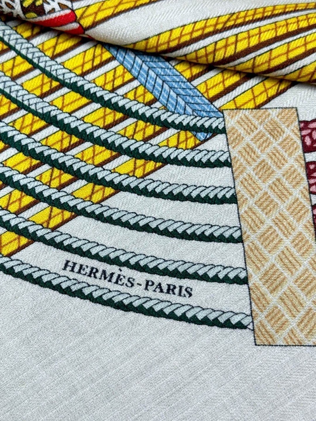 While browsing the shelves of the Emile Hermes library, designer Virginie Jamin came across an 18th-century treatise on equestrianism published in Germany. She drew inspiration from a plate in this work, which depicts patterns traced on the ground by natural and artificial horse gaits, resulting in a decorative design that is a free expression of the equestrian woven repertoire. This scarf celebrates decorative craftsmanship with an elegantly simple, asymmetrical structure.