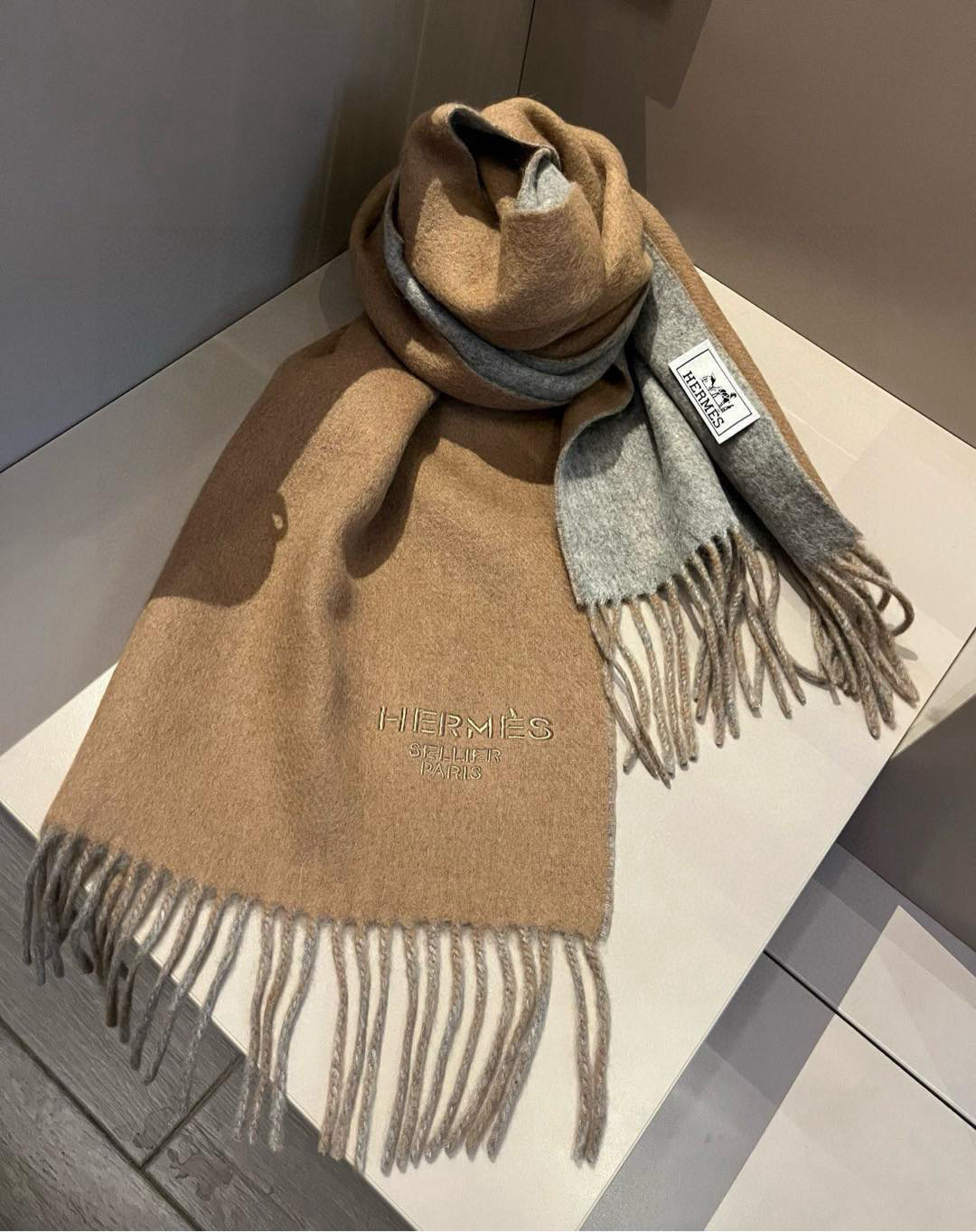🆕Hermes · Double-sided lamb wool scarf Highly recommended! 100% top-grade lamb wool material, exceptionally high quality, very warm, soft and skin-friendly, not itchy. Classic double-sided color-block design, one scarf two styles❗️ Suitable for both men and women, size: 30*180cm❗️