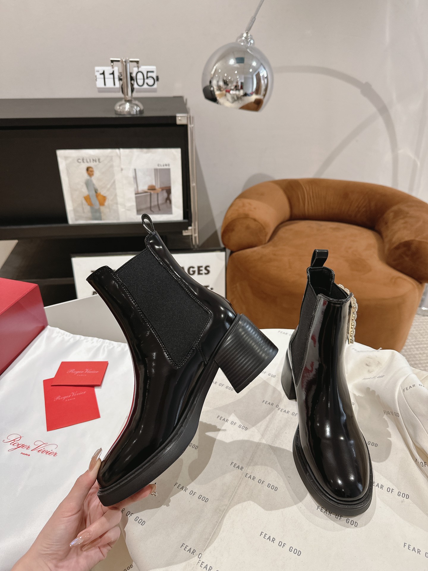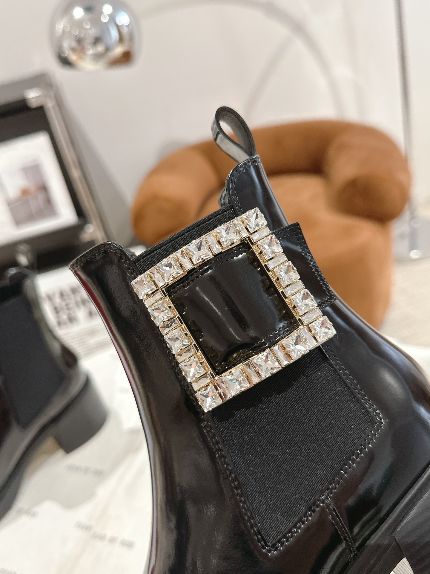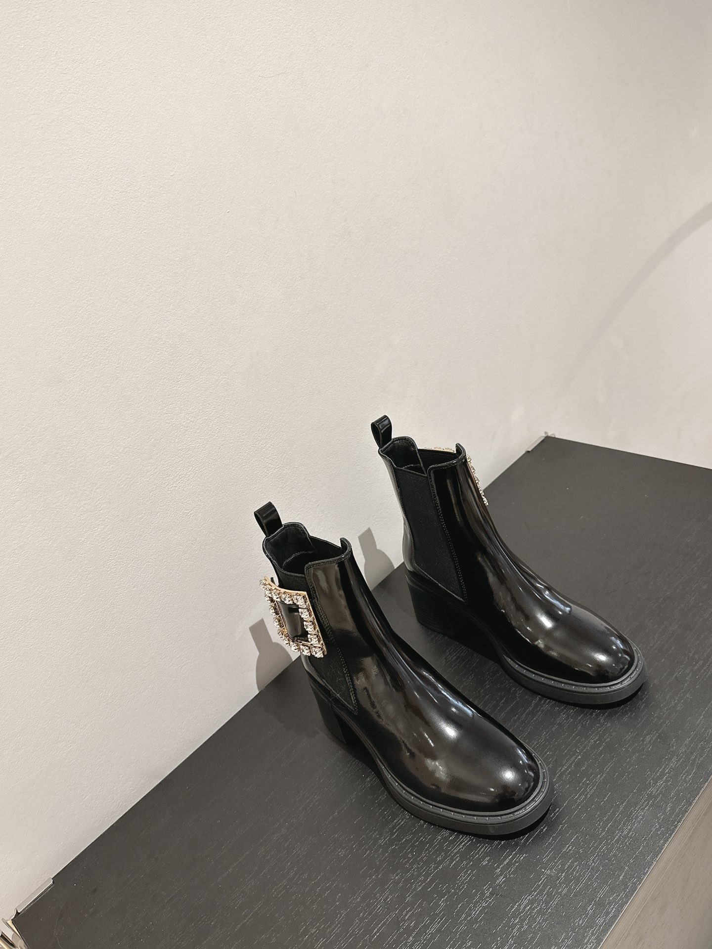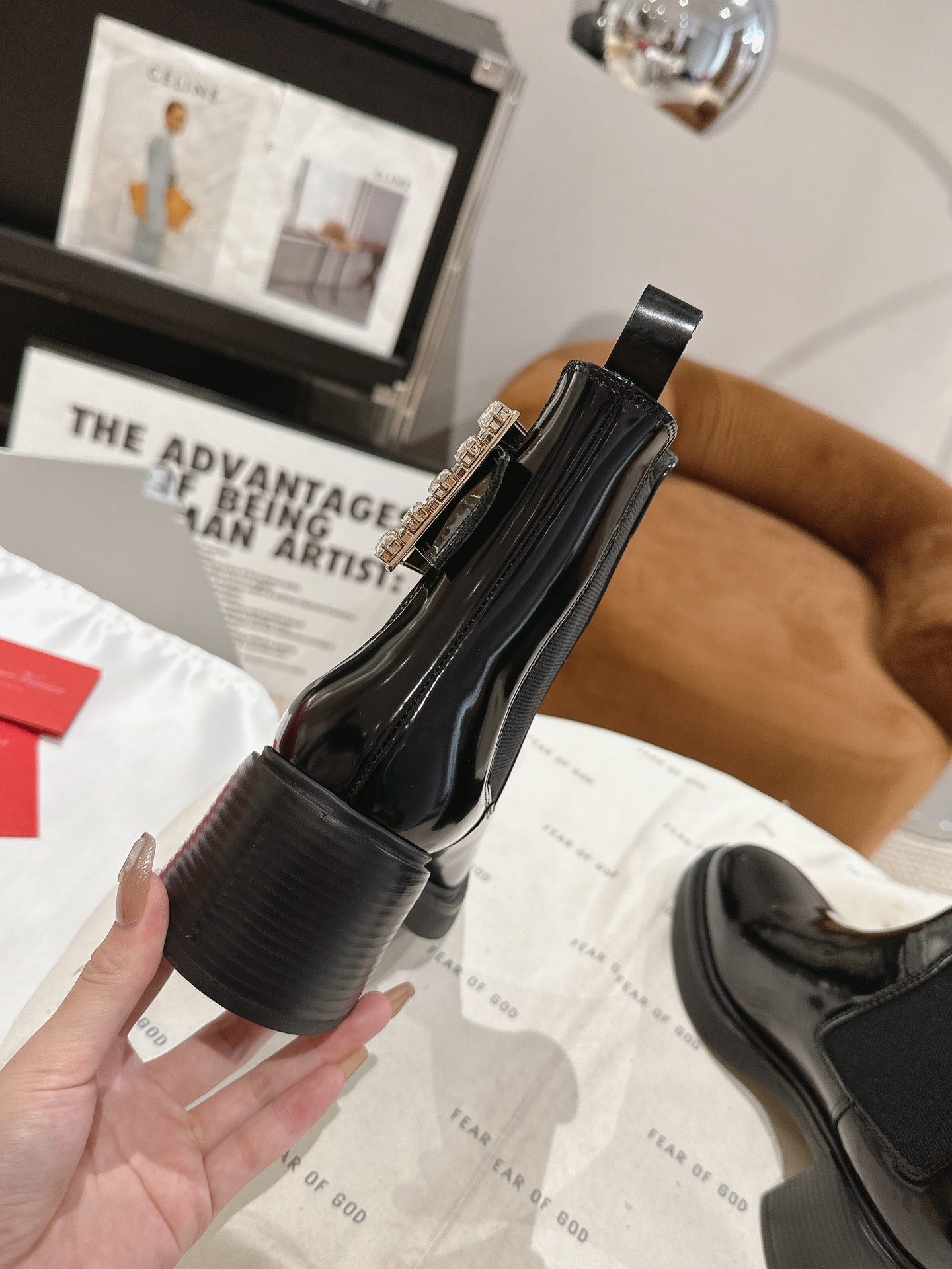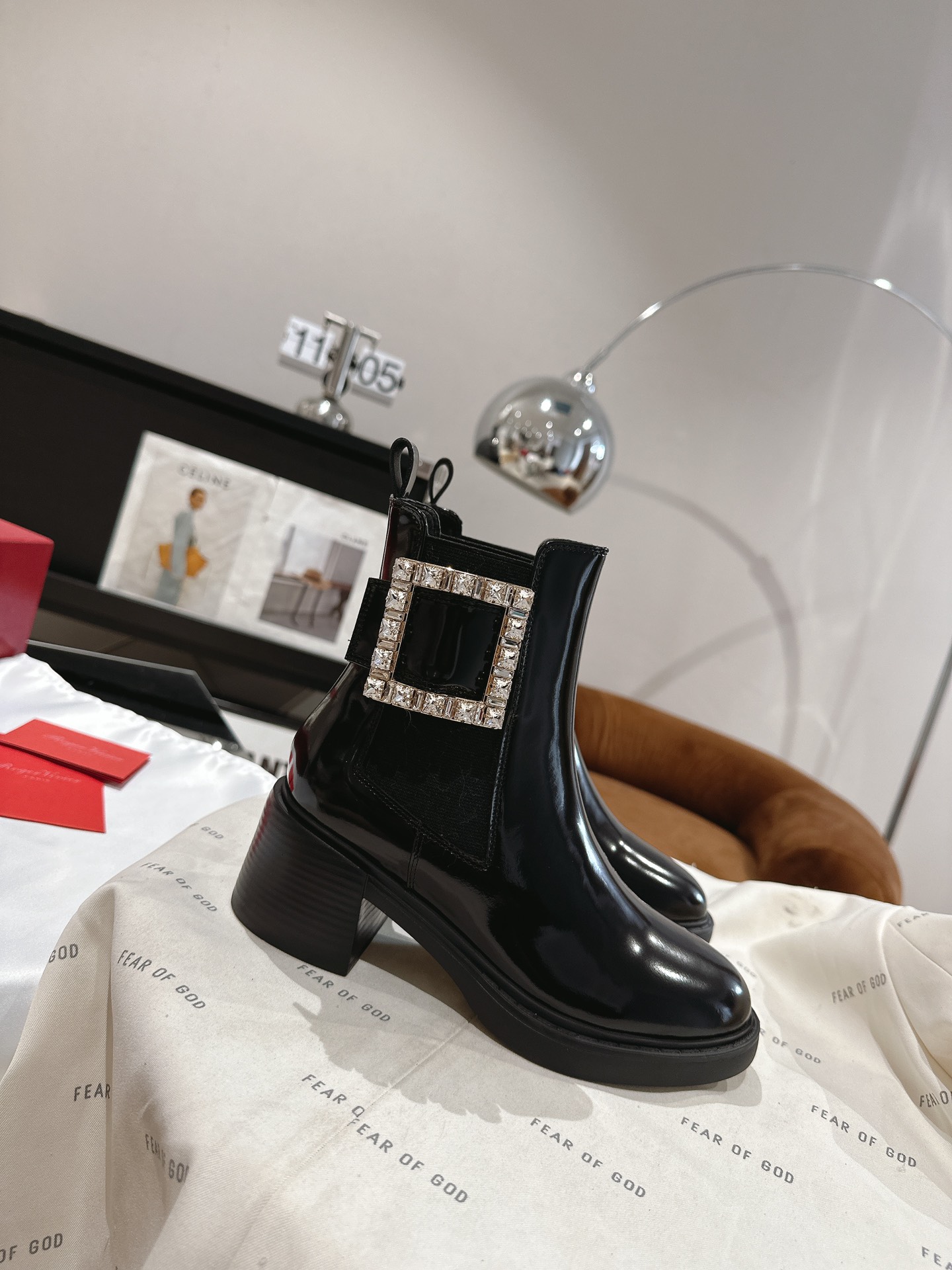 Original Title: Short Boots 👗 Roger Vivier " | 2023 SS 🍷 New counter model, same style as Da Mimi Mi, square buckle chunky heel platform short boots now available 〰