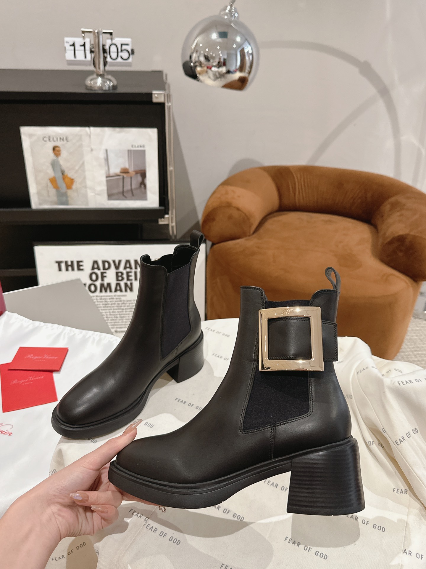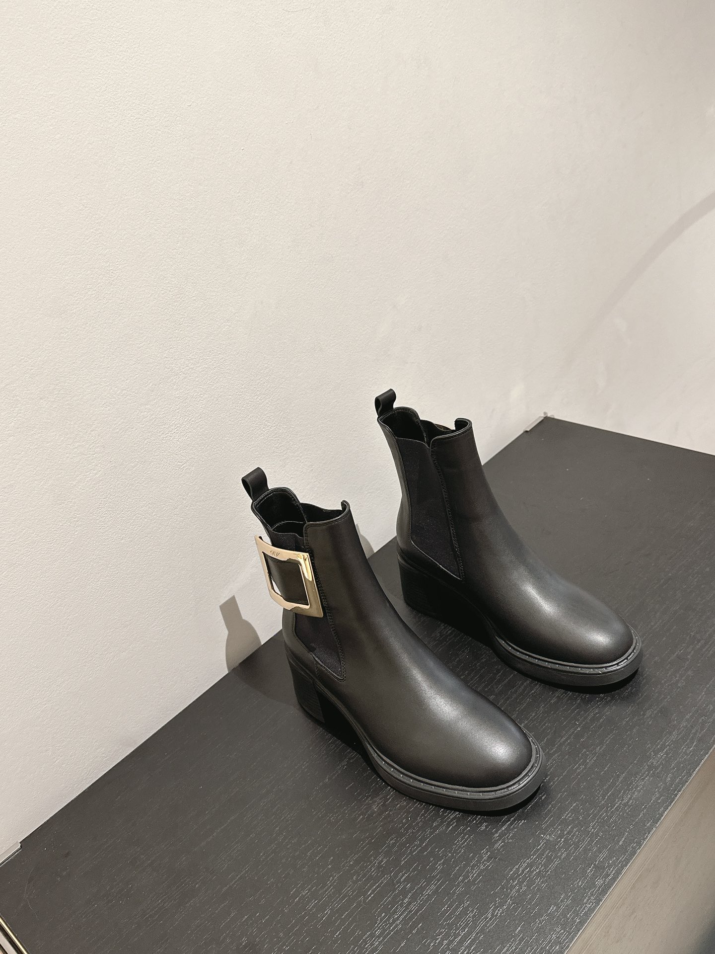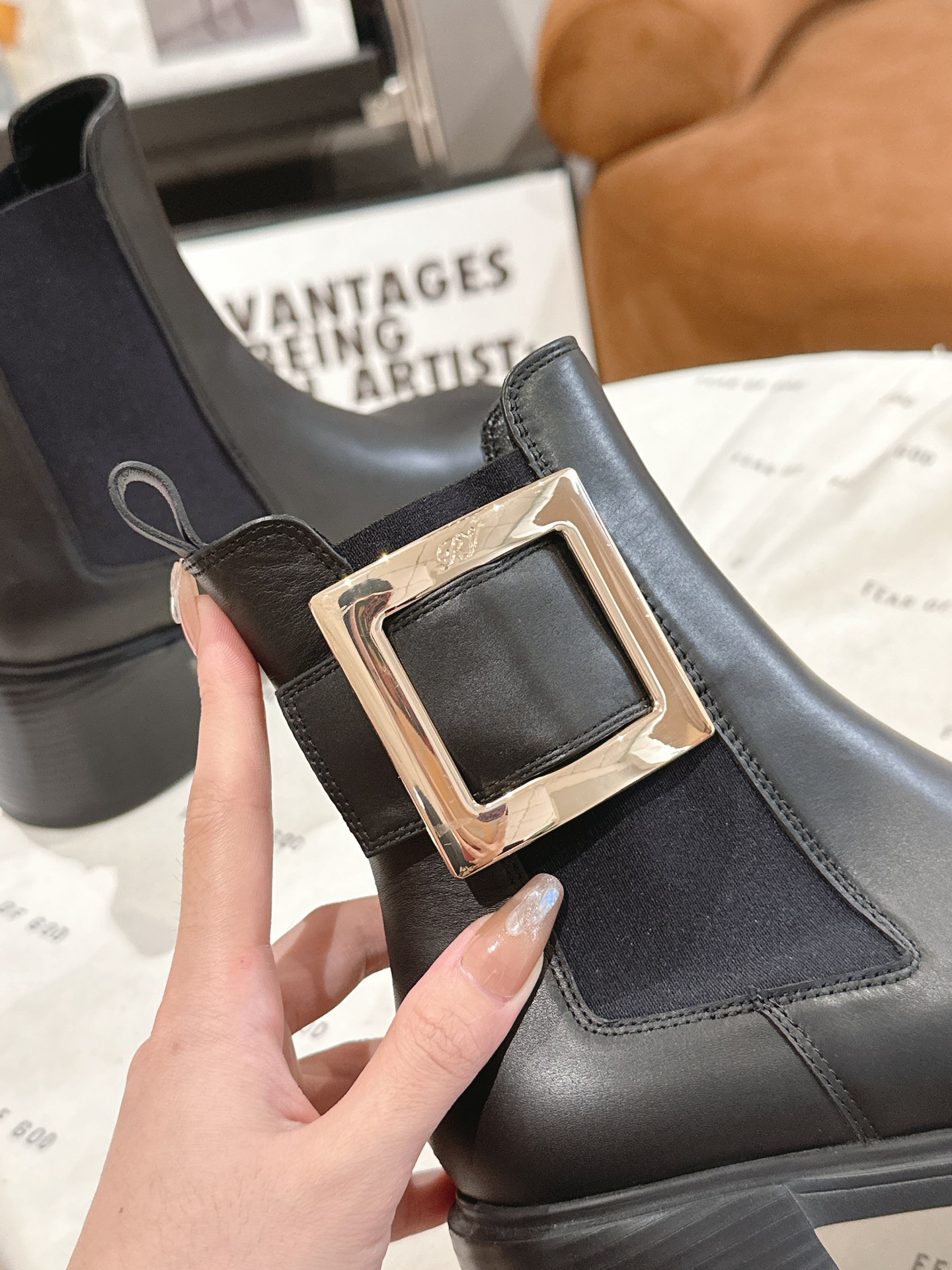 Short Boots 👗𝑹𝒐𝒈𝒆𝒓𝑽𝒊𝒗𝒊𝒆" | ²⁰²³ 𝐬𝐬 🍷 Exclusive New Style, Same as Big幂幂's Square Buckle Chunky Heel Platform Short Boots, New Arrival 〰