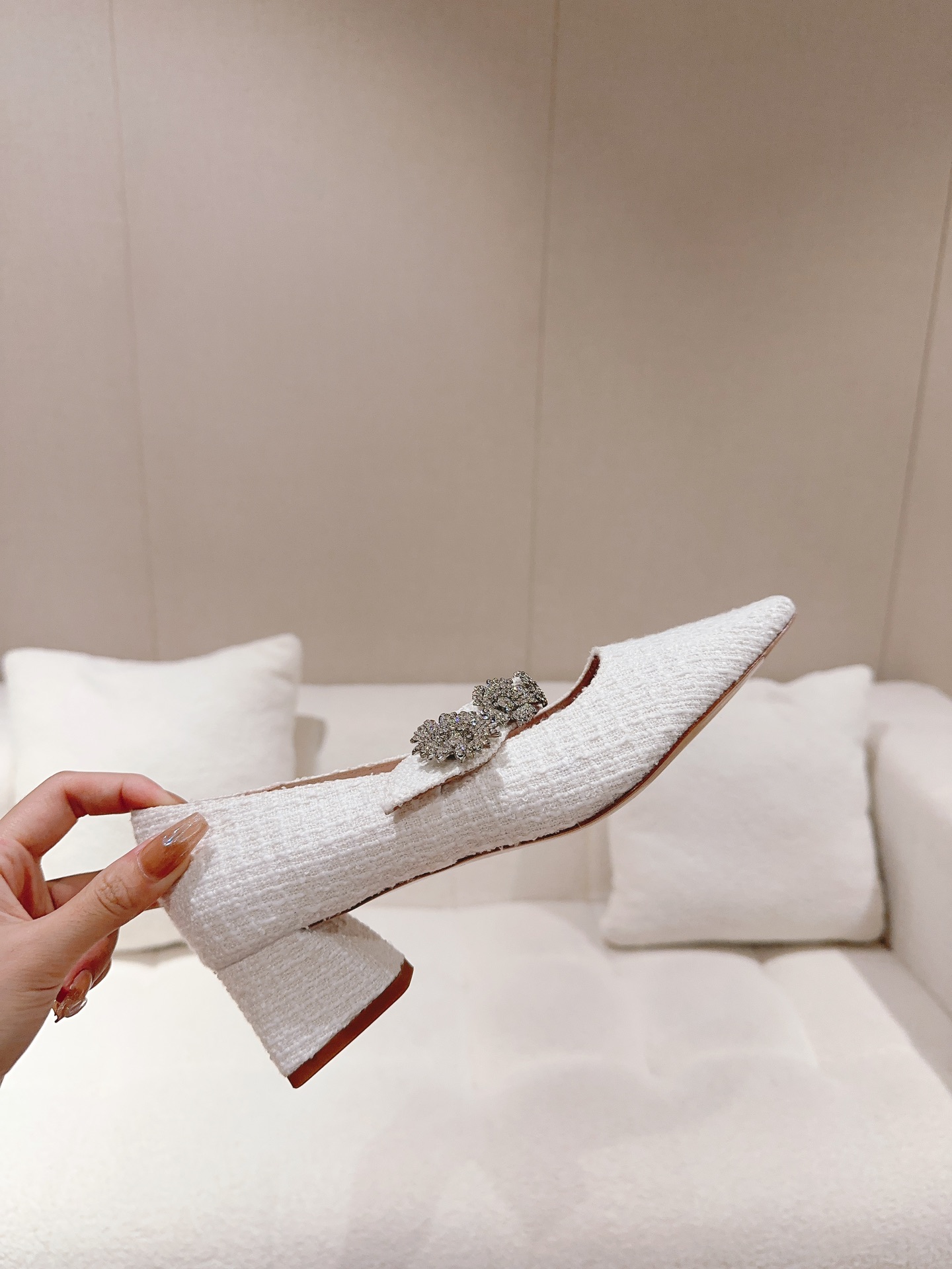 🌺 Boutique new snowflake crystal buckle silk pointed toe flats series luxury new arrival〰