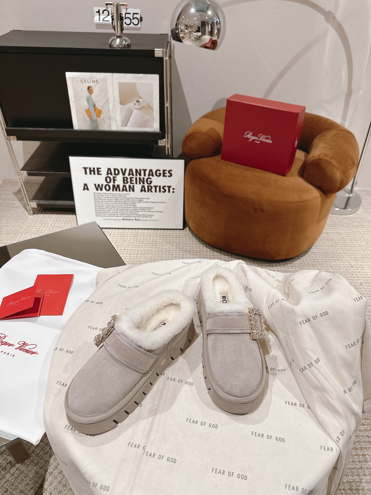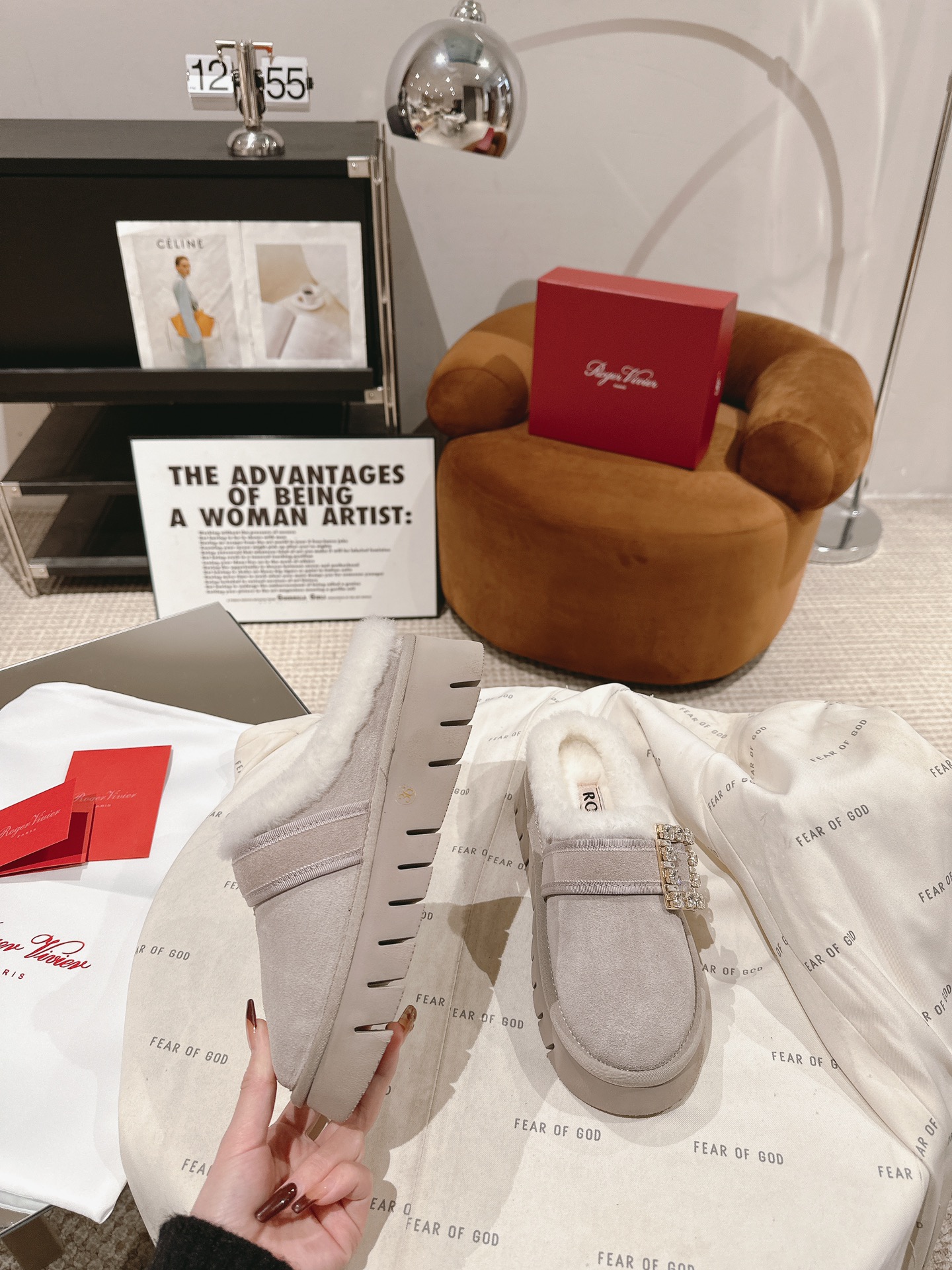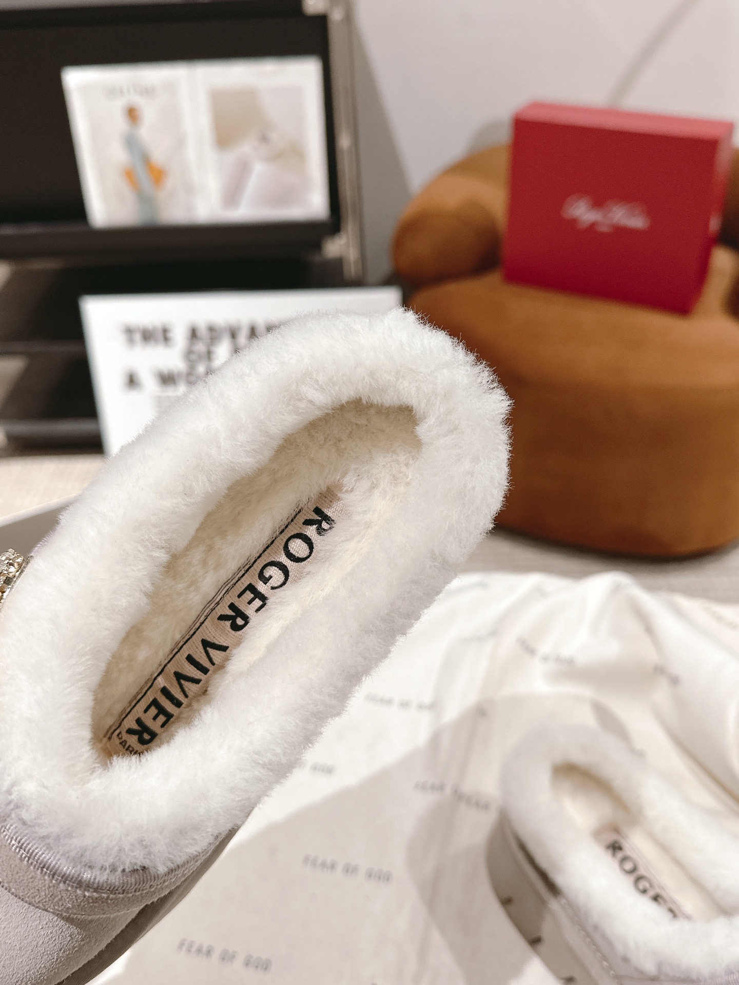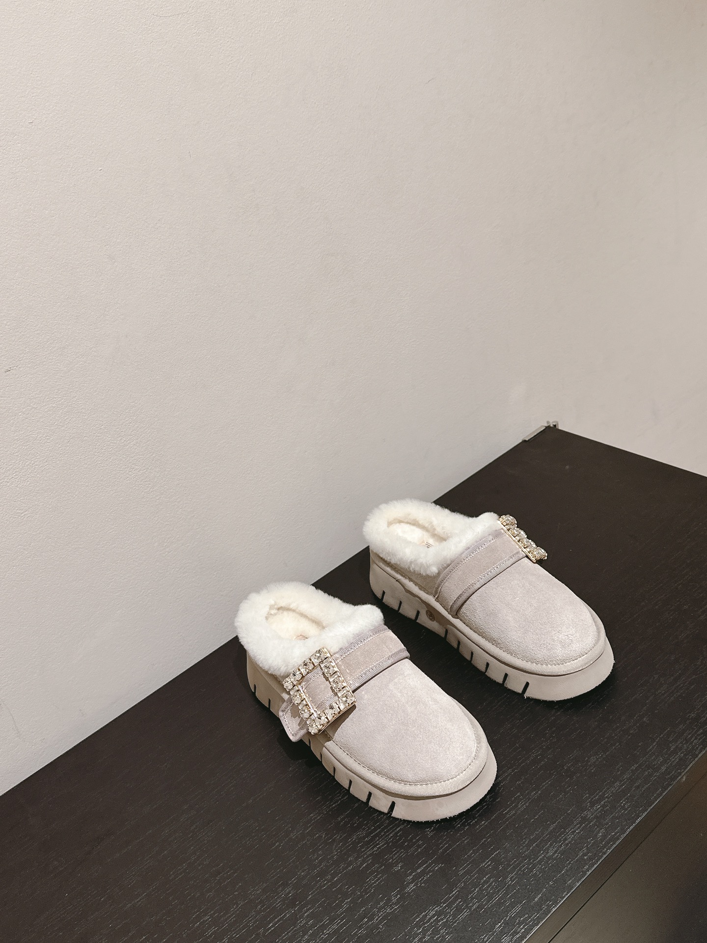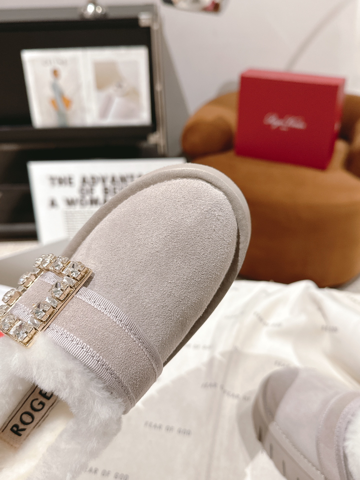 Purchasing quality❗️❗️Roger VI*** RV most beautiful snow slippers have arrived! Our product uses the last closest to the original, with a strong feel. (The patent leather uses imported wrinkled patent leather) (The suede is imported cow reverse suede) The interior is integrated fur and wool, very soft. Including color, thickness, and texture are exactly the same as the original, neither too long nor too short, just right~ The shoe hardware is original mold hardware (private mold), genuine materials! Original mold molded sole! Lightweight on foot, sizes 35-40#