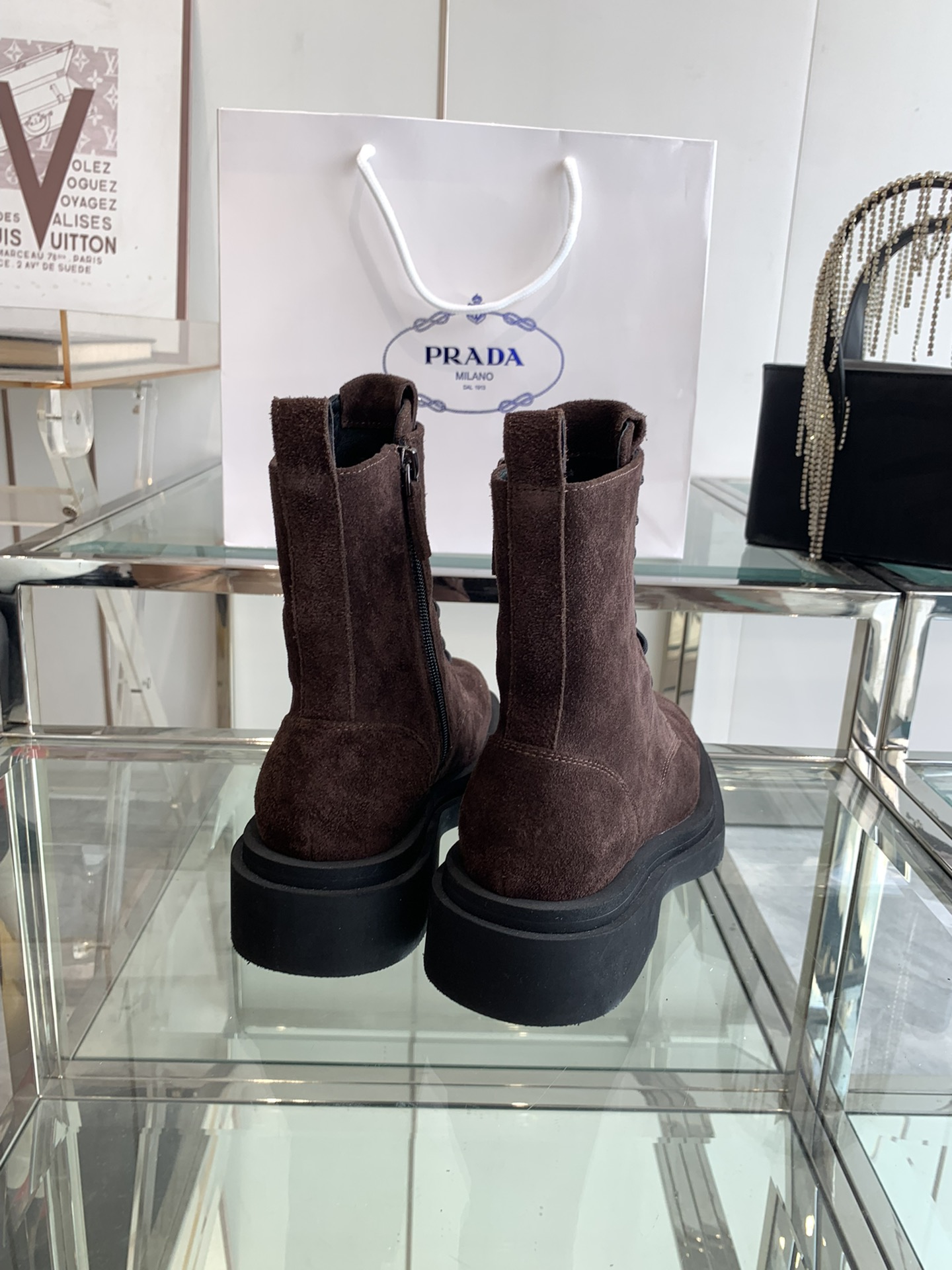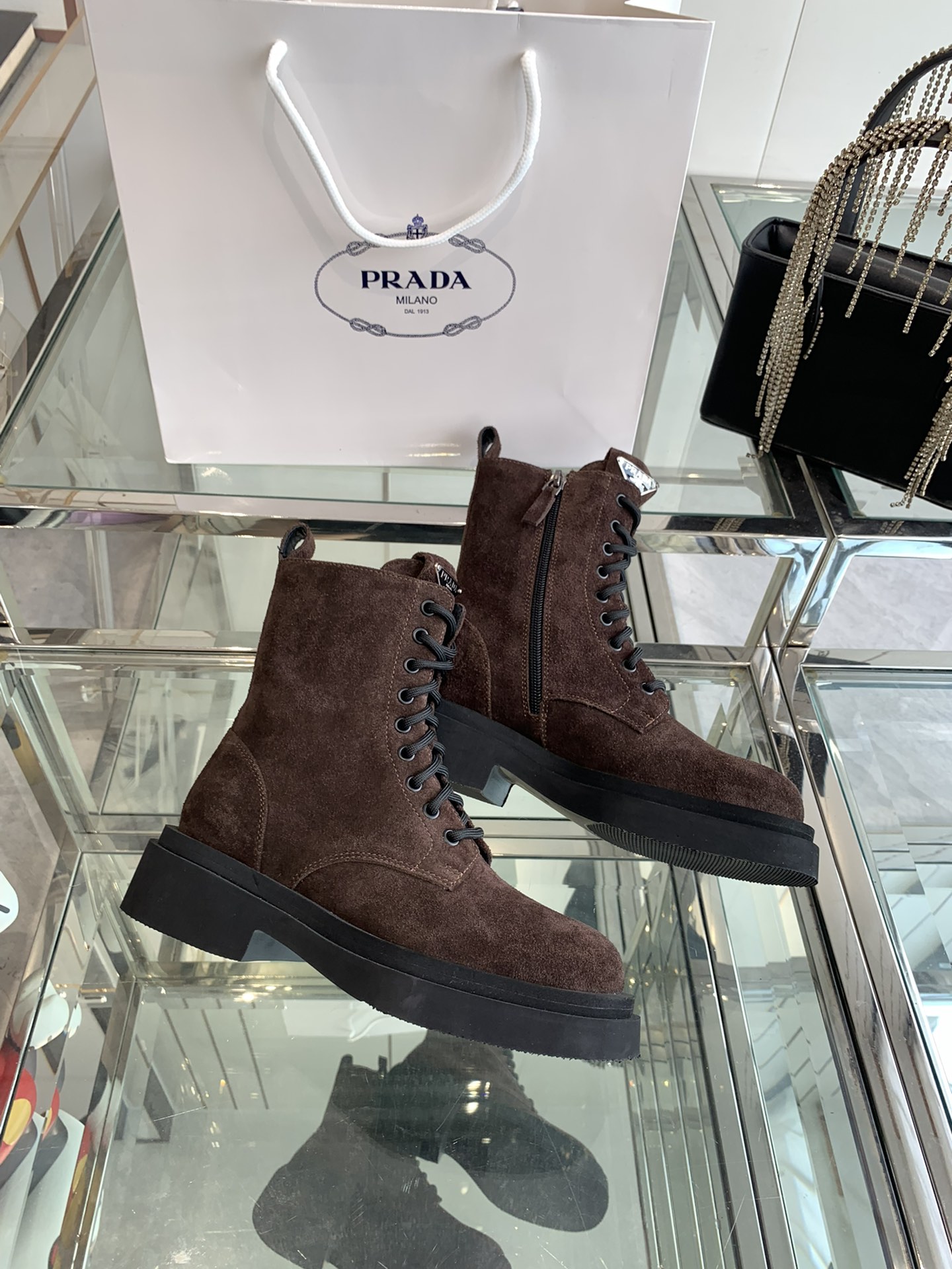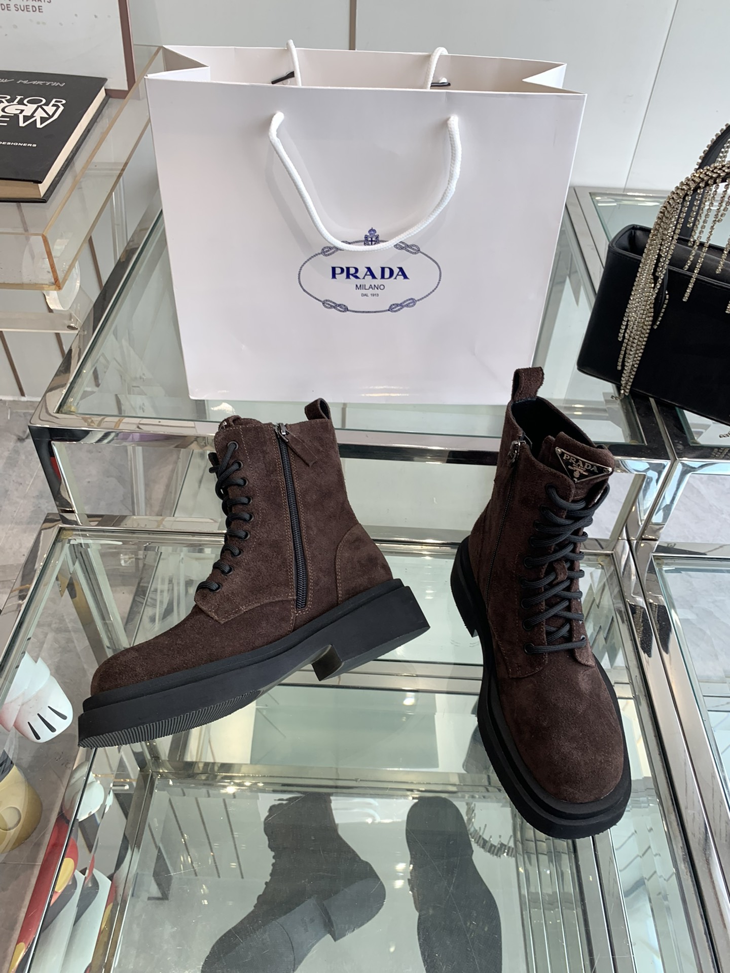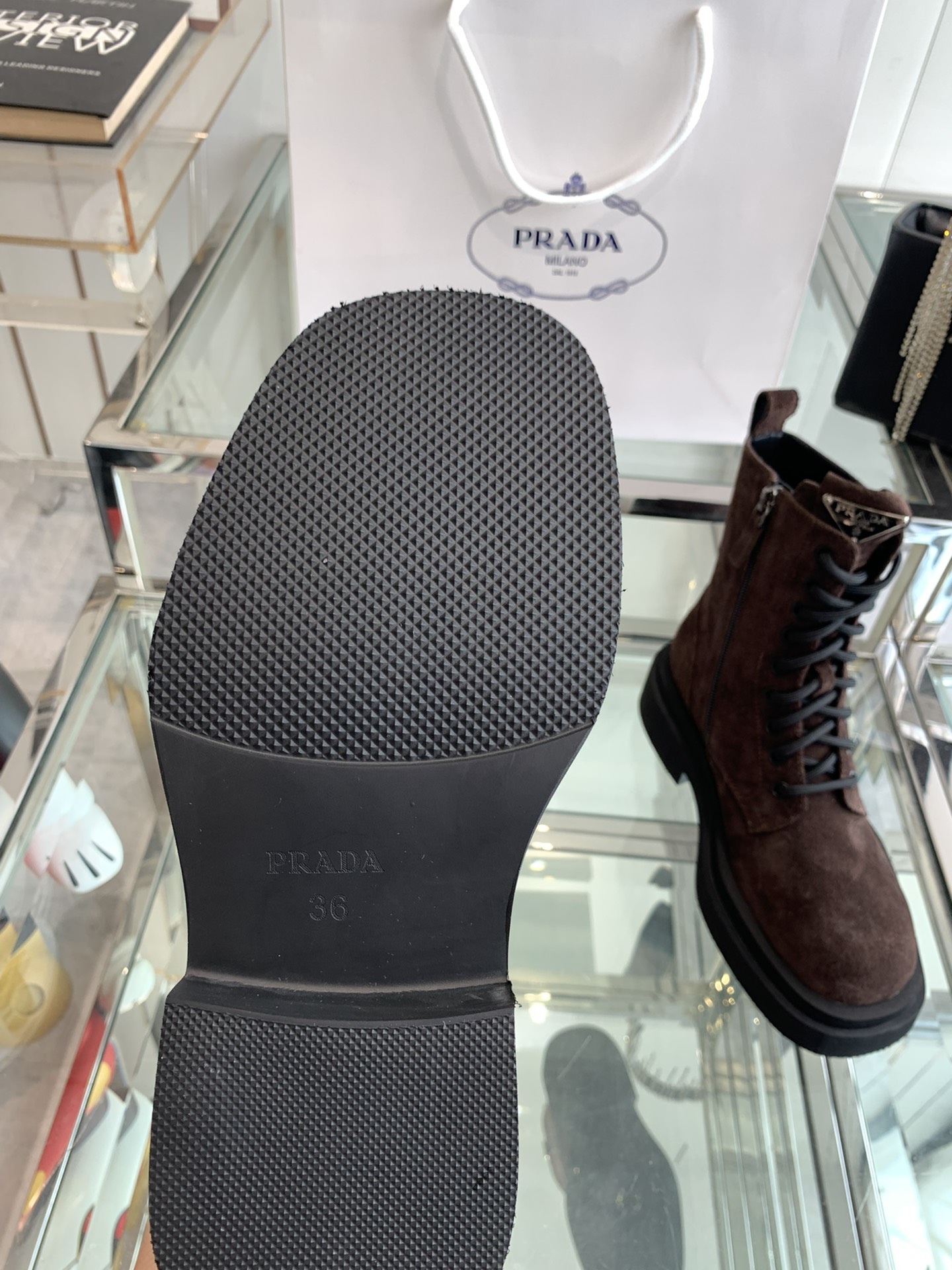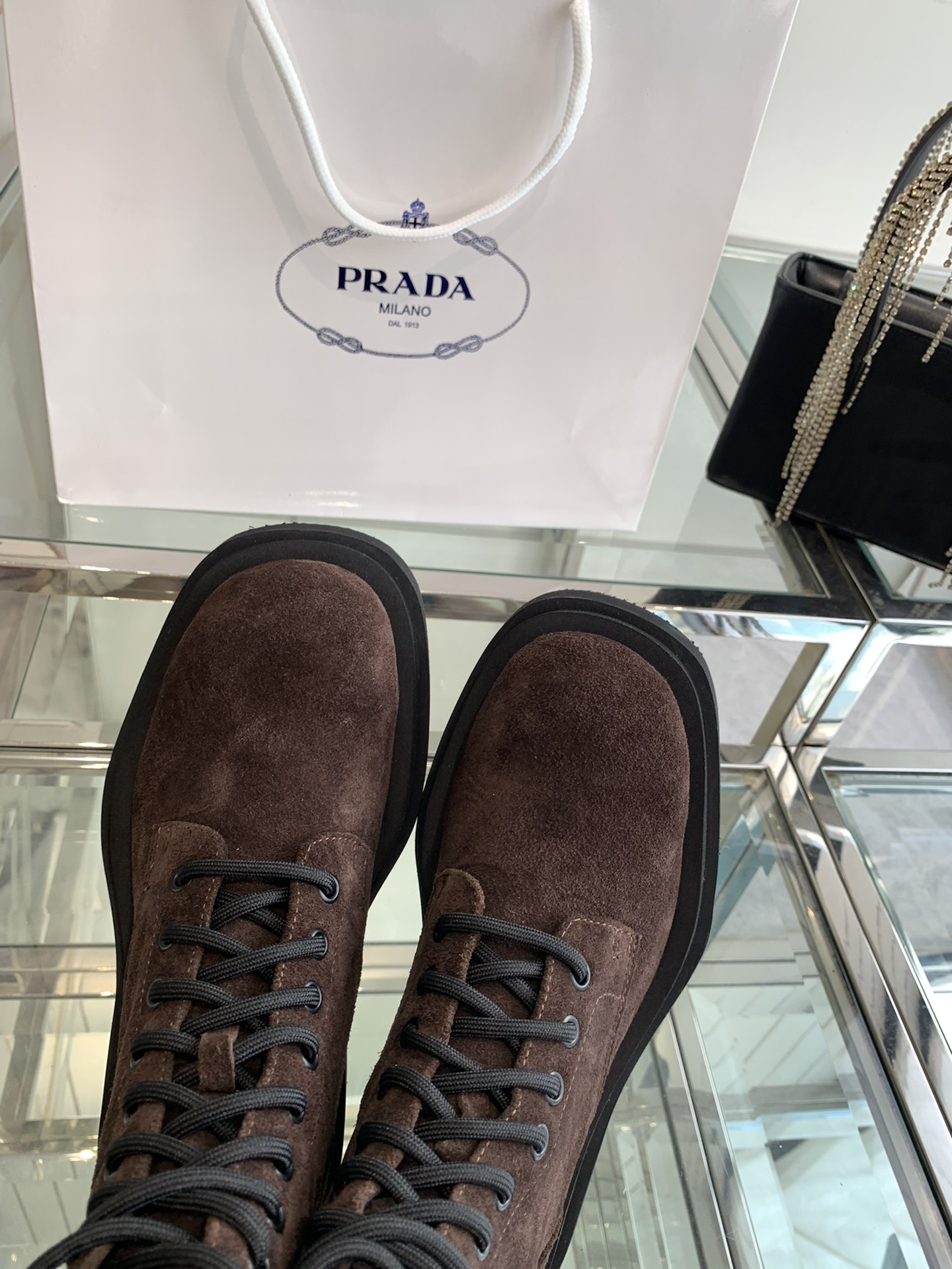A series that is hard to buy in winter, definitely this year's hit style. So good-looking! Prada boots are really amazing! They look elegant on the feet, make legs appear slimmer, and perfectly capture the right vibe. The entire series uses a variety of imported materials: waxed calfskin, pearlized calfskin, high-gloss suede, and water-dyed sheepskin lining! Foam sole for lightweight comfort! Sizes: 35-41 (40 and 41 are custom-made).