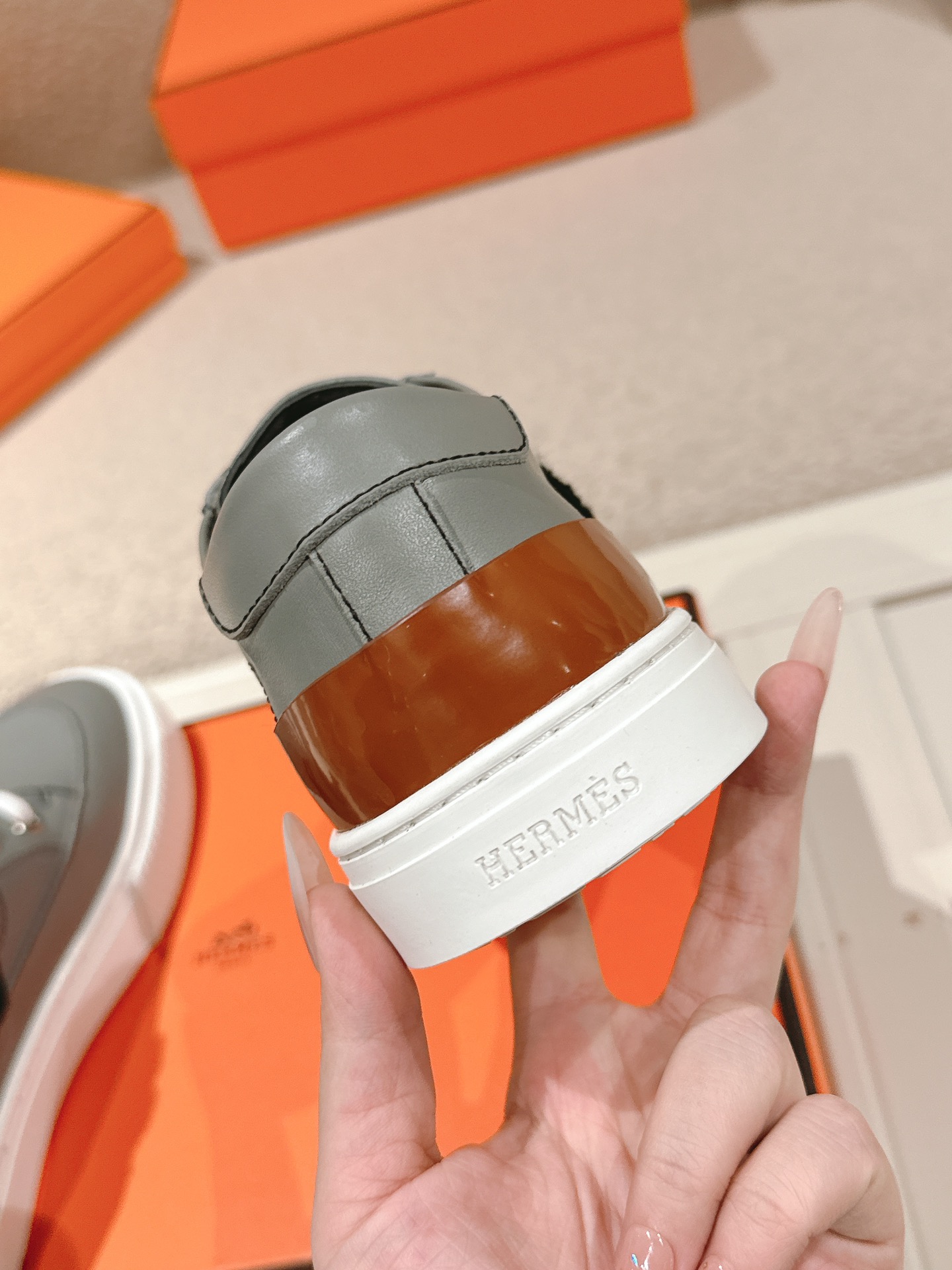 Hermes Deep Series Couple's White Sneakers Casual Skate Shoes Fashionable Graphic Design Creating Retro Style