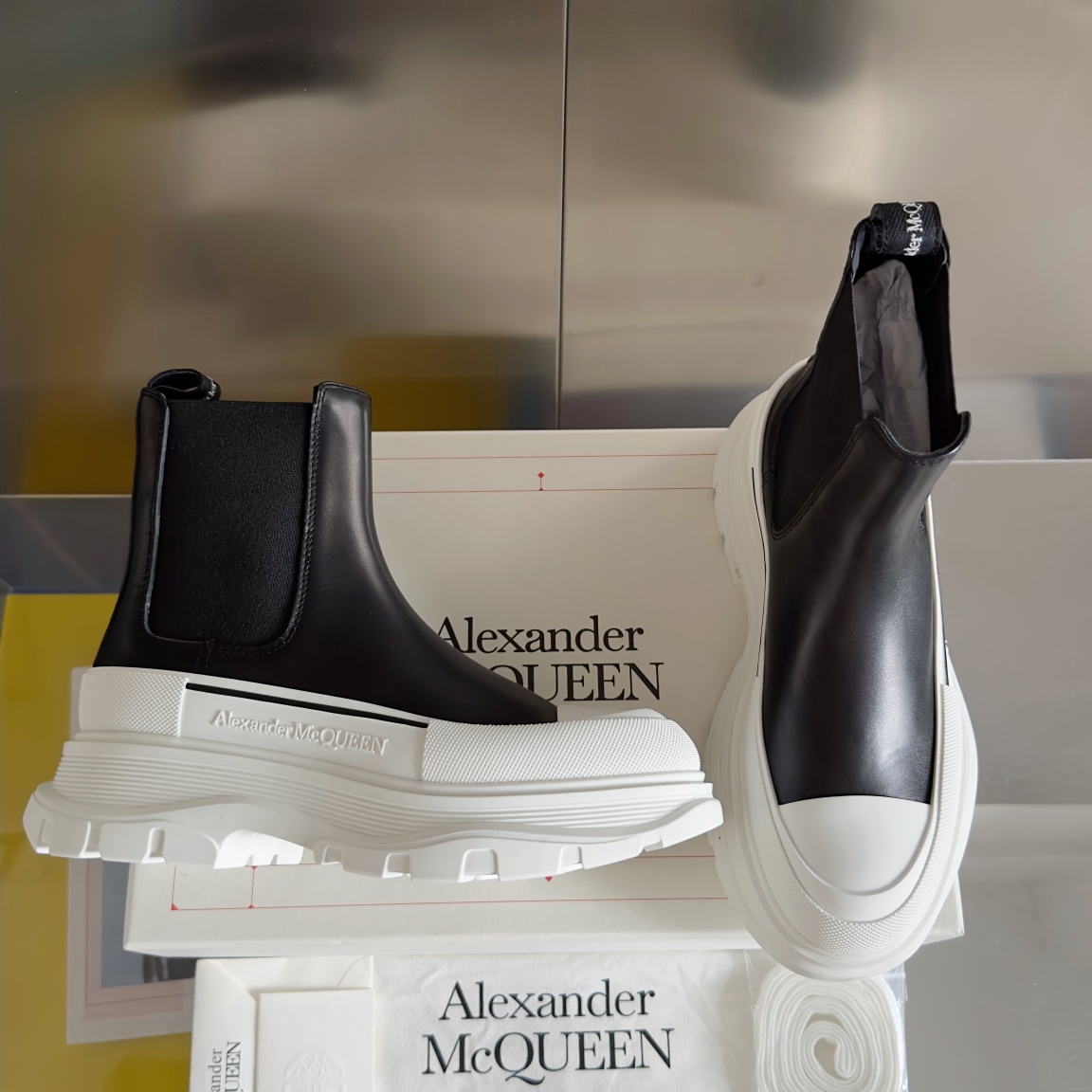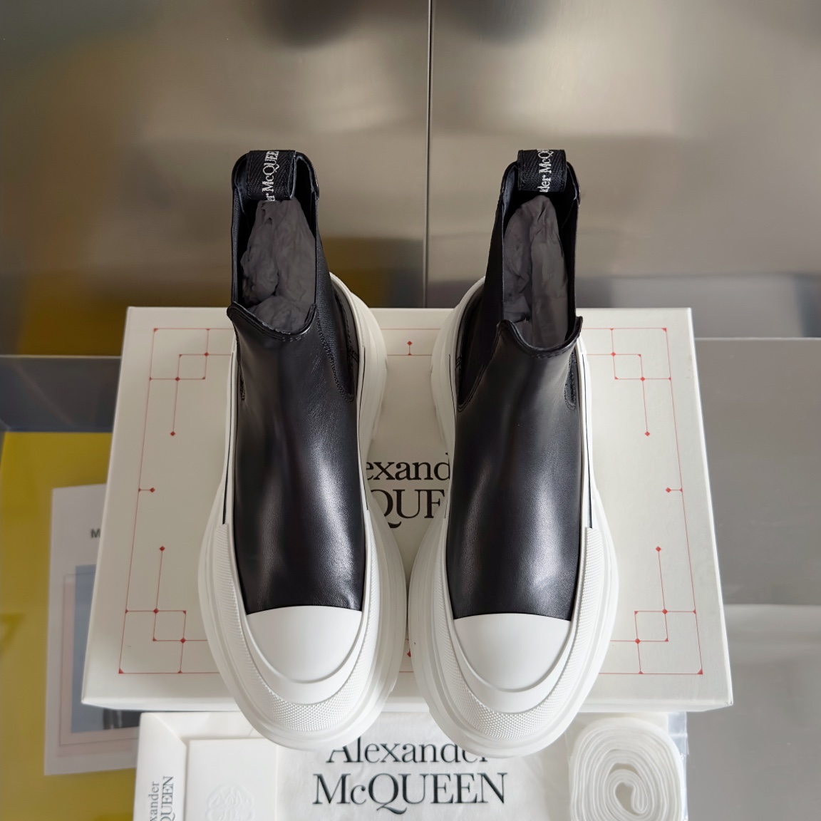 ALEXANDER MCQUEEN Tread Slick Series Platform Lace-Up Zipper Canvas Shoes Couple Style Ankle Boots Sock Boots Casual Sneakers