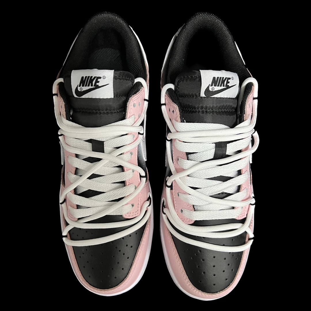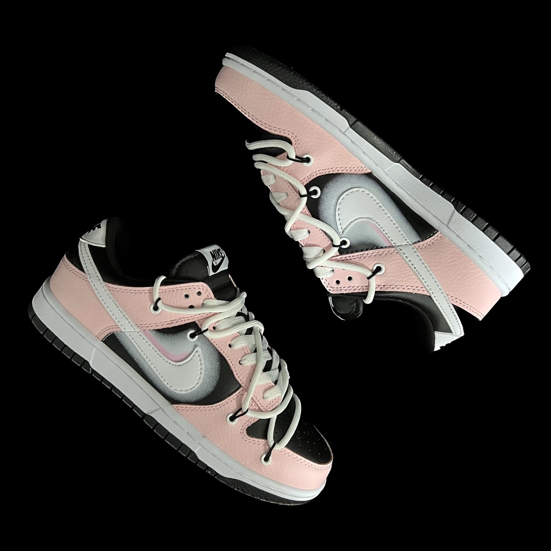 This design is inspired by the contrast between black and pink, featuring a dual-lace design to highlight the beauty of contrast. Custom sneakers can be worn and washed normally. During wear, try to avoid intense exercise, rough wear, contact with sharp objects, and high-concentration organic solvents.