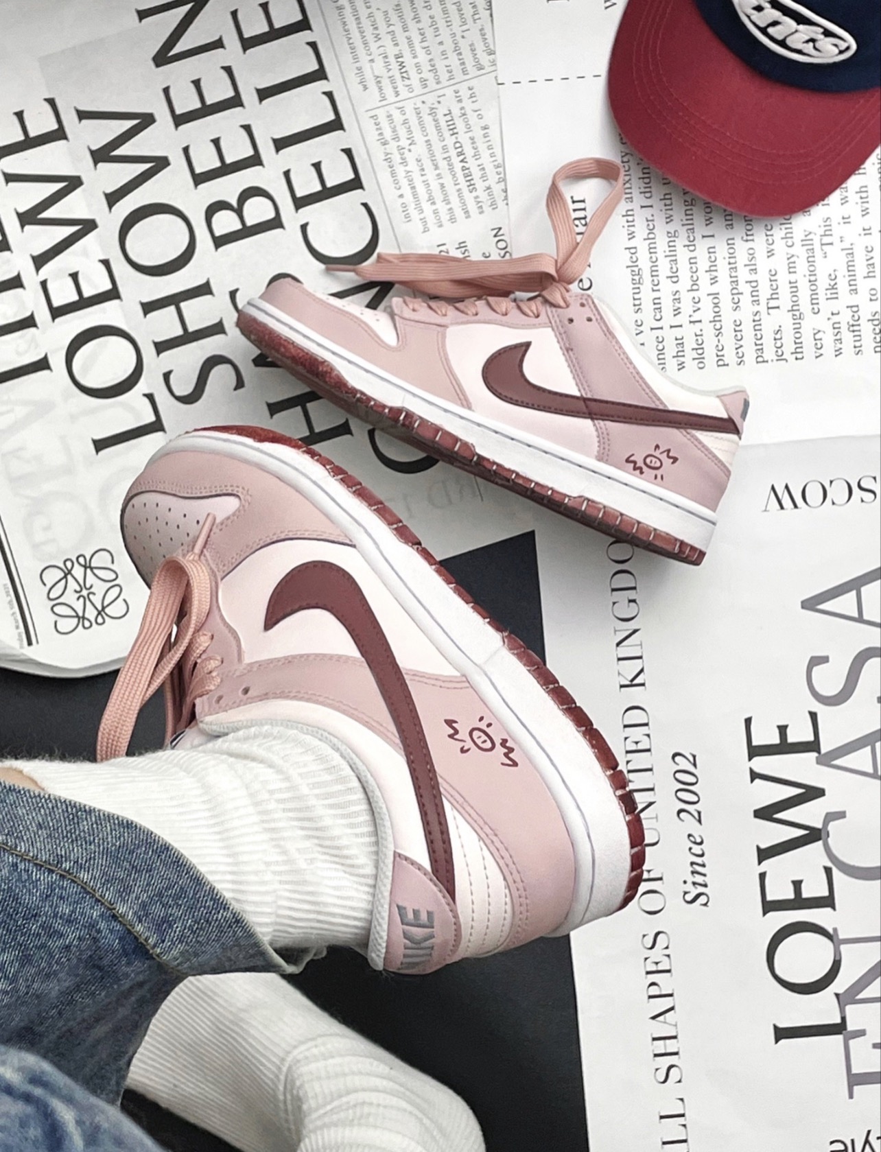 Nike Dunk Low Cherry Valentine: Soft beige base with pink-purple gradient. Sweet, unique summer style. Item: FC1688-118. Sizes 36-45.