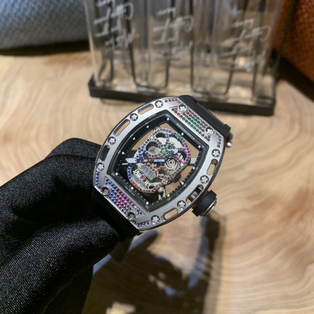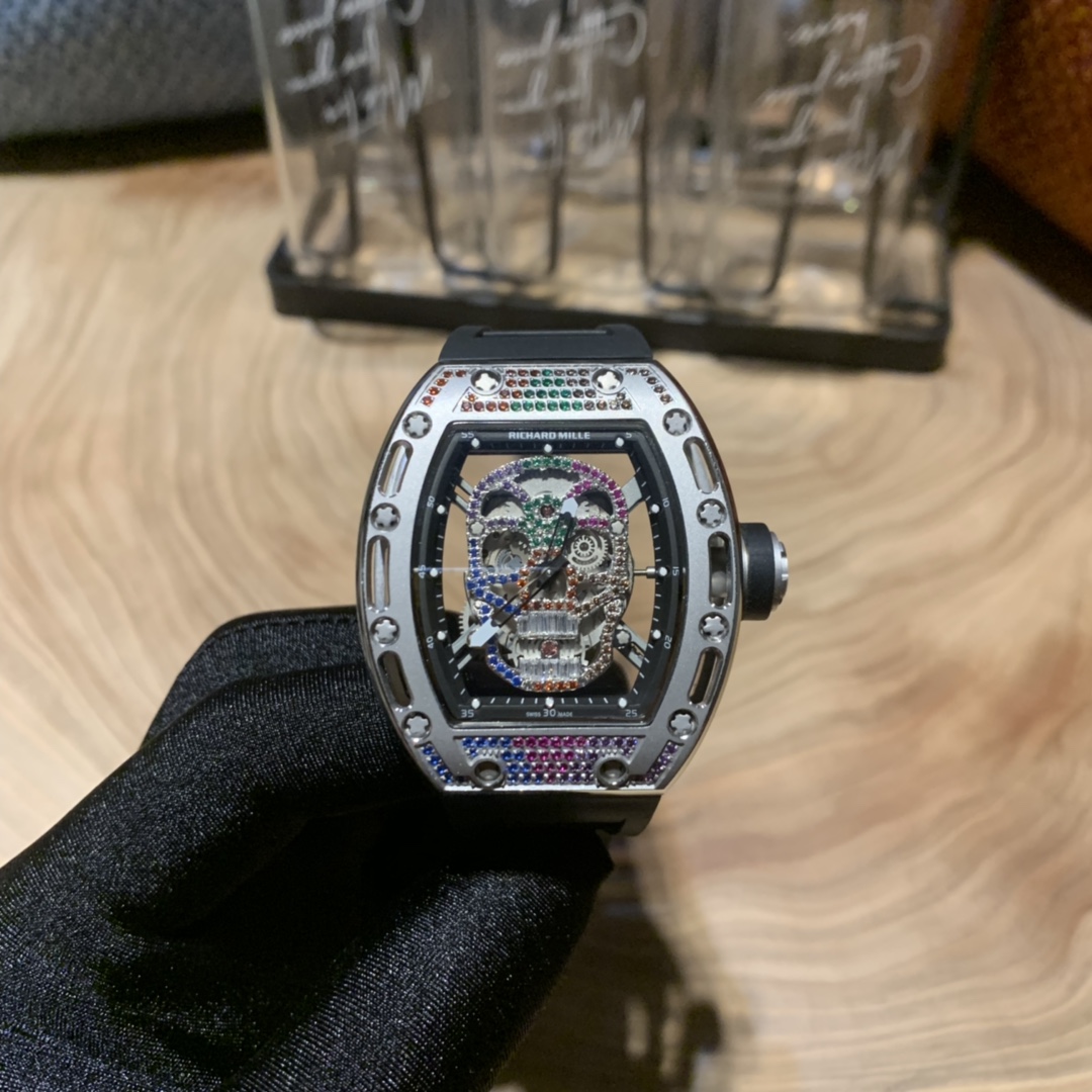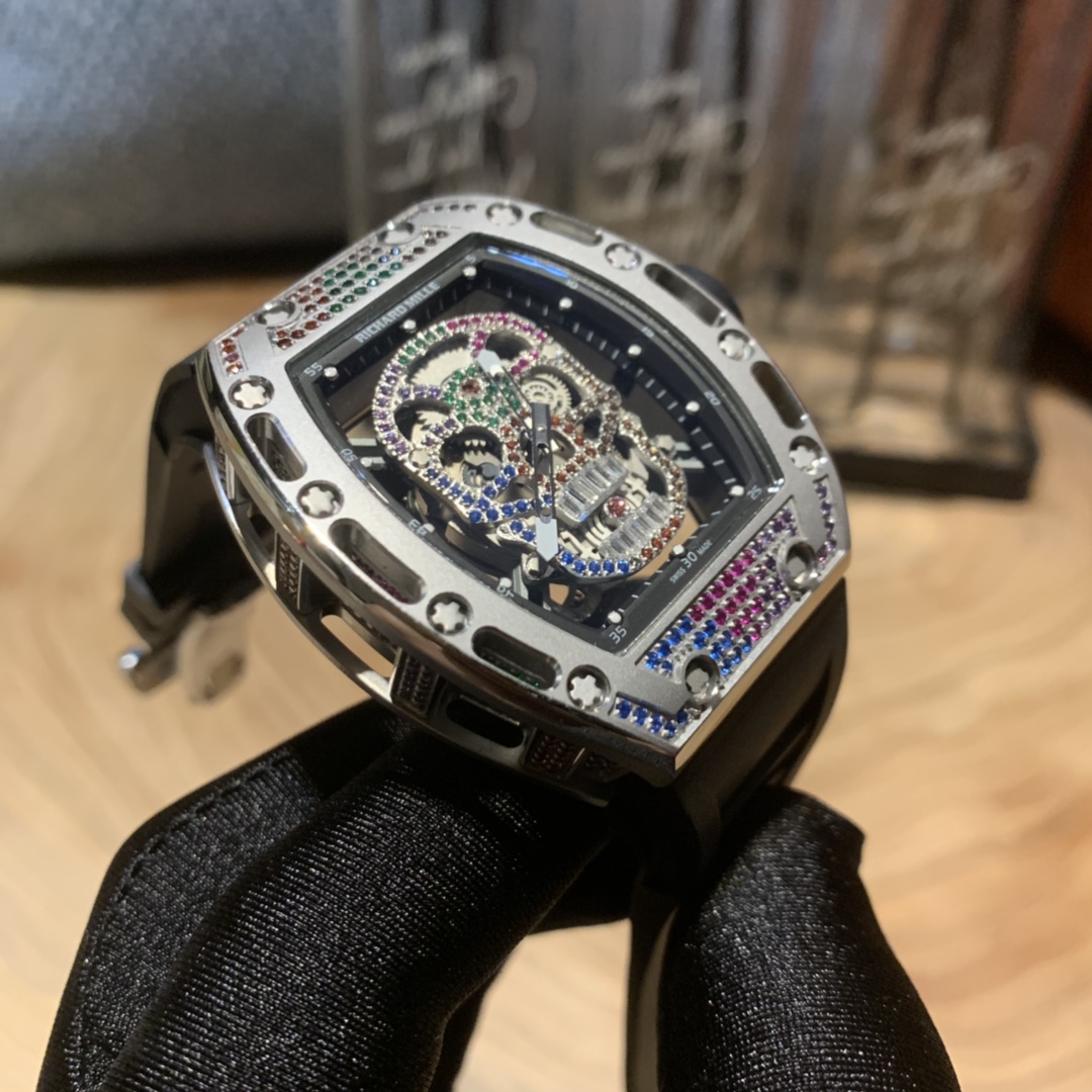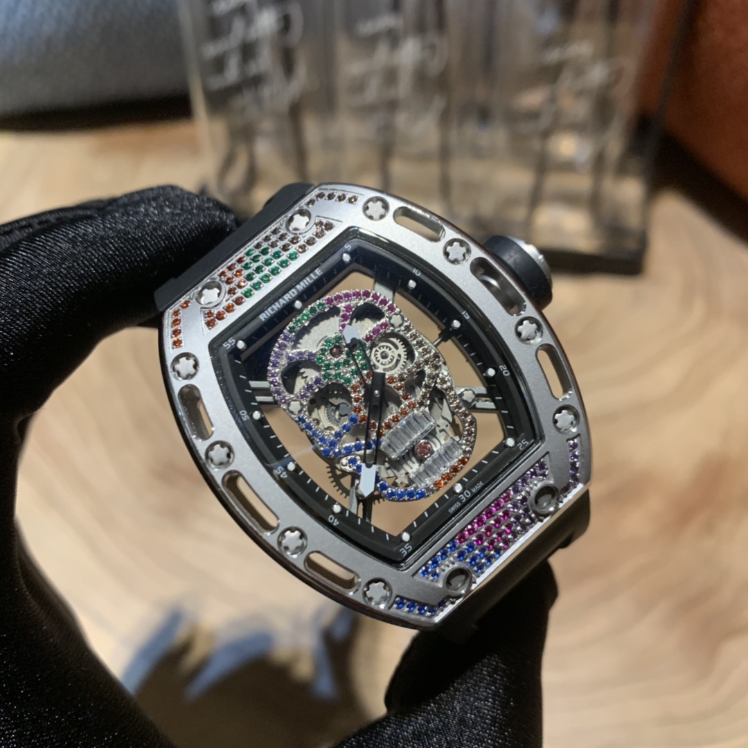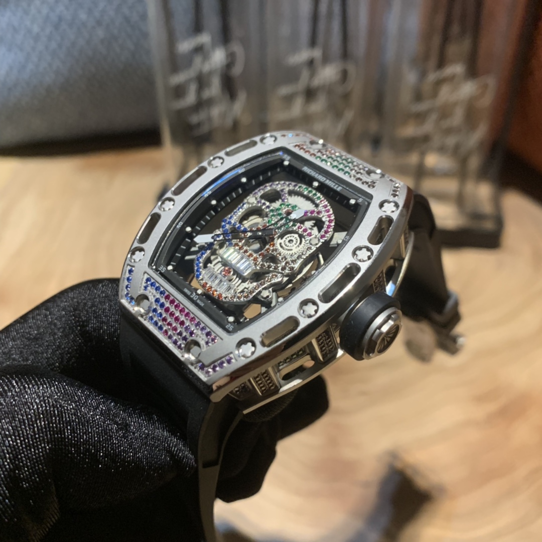 Richard Mille RM-052 Skull series with colorful diamonds, skeleton design, anti-glare sapphire crystal, imported mechanical movement. Captivates watch enthusiasts.
