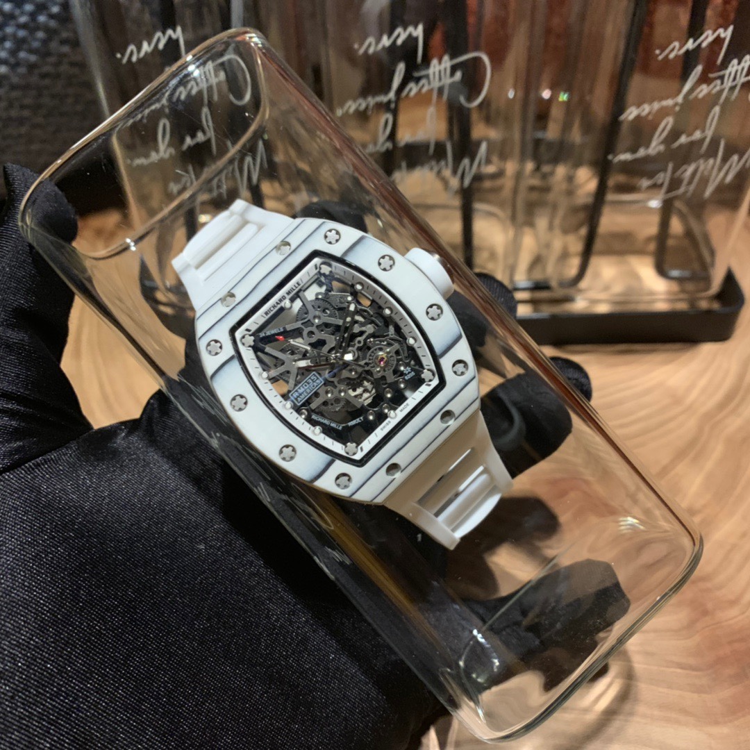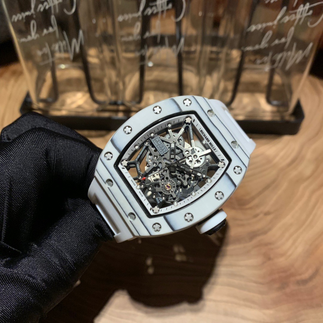 Richard Mille RM-035 jade carbon fiber luminous skeleton watch. Three-part structure, carbon fiber bezel, 316 steel case, automatic movement, 50x42mm.