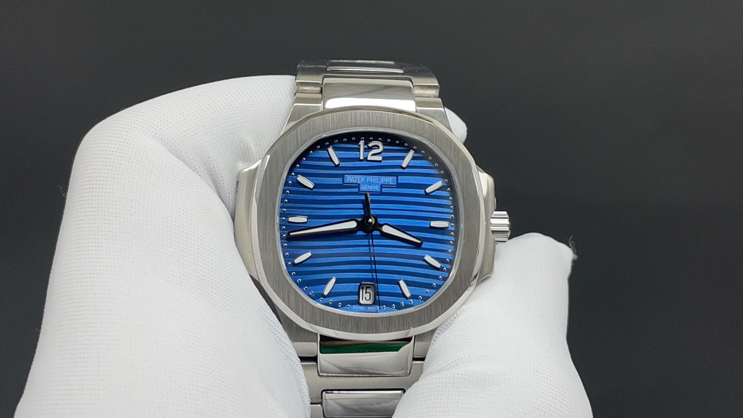 2023 Patek Philippe Nautilus women's watch. Custom 9015 movement, 45h power. 35.2mm, 56 Swarovski crystals. Anti-glare sapphire. Elegant design.